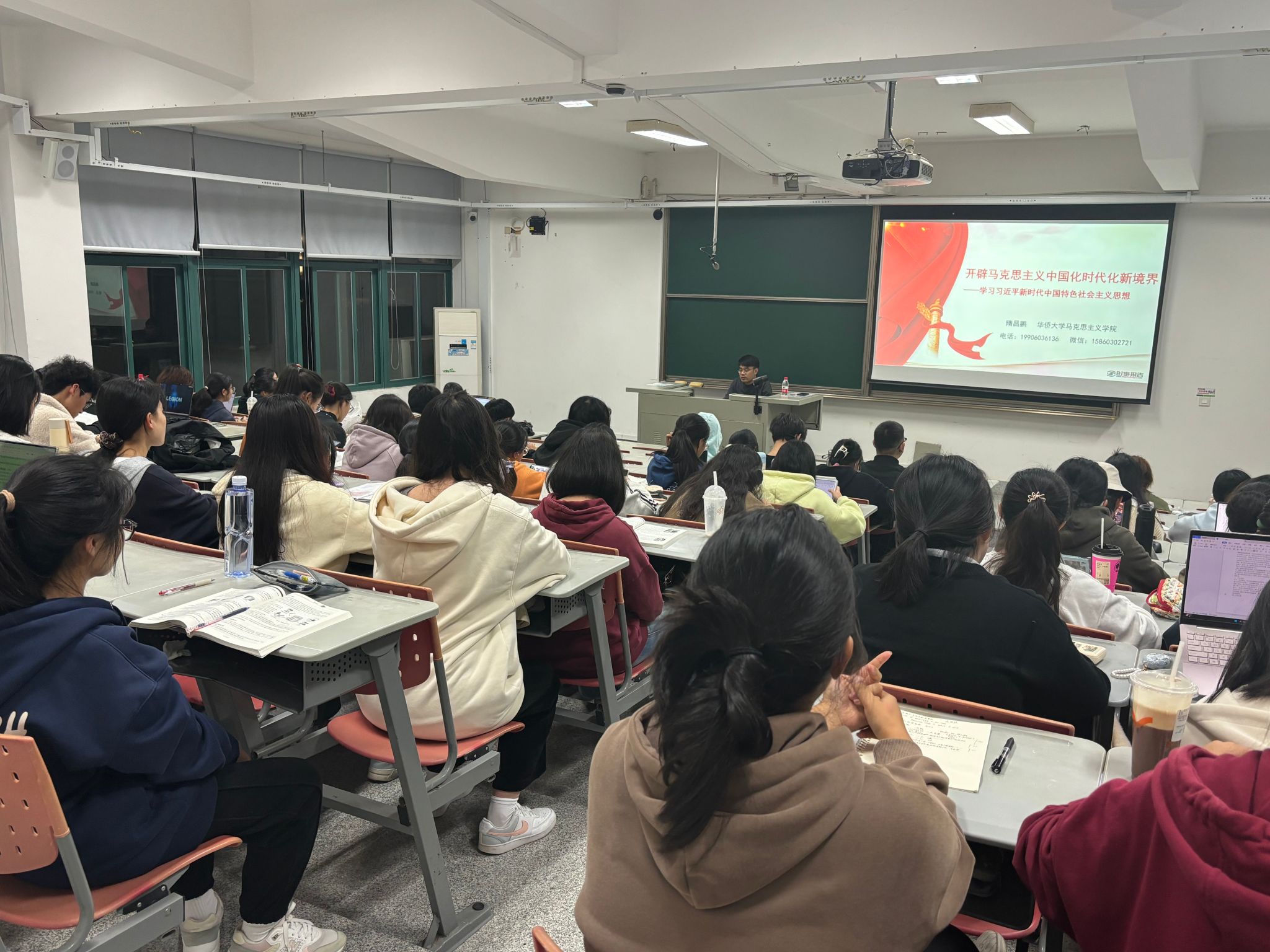隋老师从党的二十大、马克思主义中国化的内涵与发展阶段开始讲起,给同学们生动地讲述了马克思主义中国化是植根于中华优秀传统文化的土壤钟生长和繁荣起来,是用中国人民喜闻乐见的民族语言来讲述的马克思主义理论。还讲述了过去十年的非凡成就以及实现中华民族伟大复兴与坚定发展让同学们倍感力量。同时强调统一战线是党克敌制胜、执政兴国的重要法宝,是团结海内外全体中华儿女实现中华民族伟大复兴的重要法宝,希望各位同学学习和感悟中熔铸政治底色。