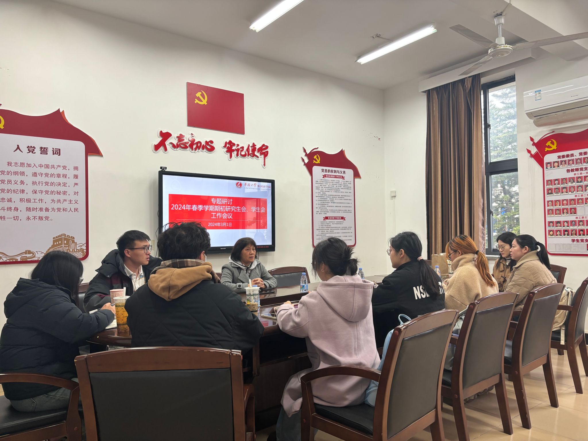 3月1日下午,永利23411集团召开学生组织专题会议,永利23411集团党委书记李璐岚、辅导员马伟光、苏安妮以及学院学生会、研究生会主席团成员共同探讨本学期学生活动与组织建设。