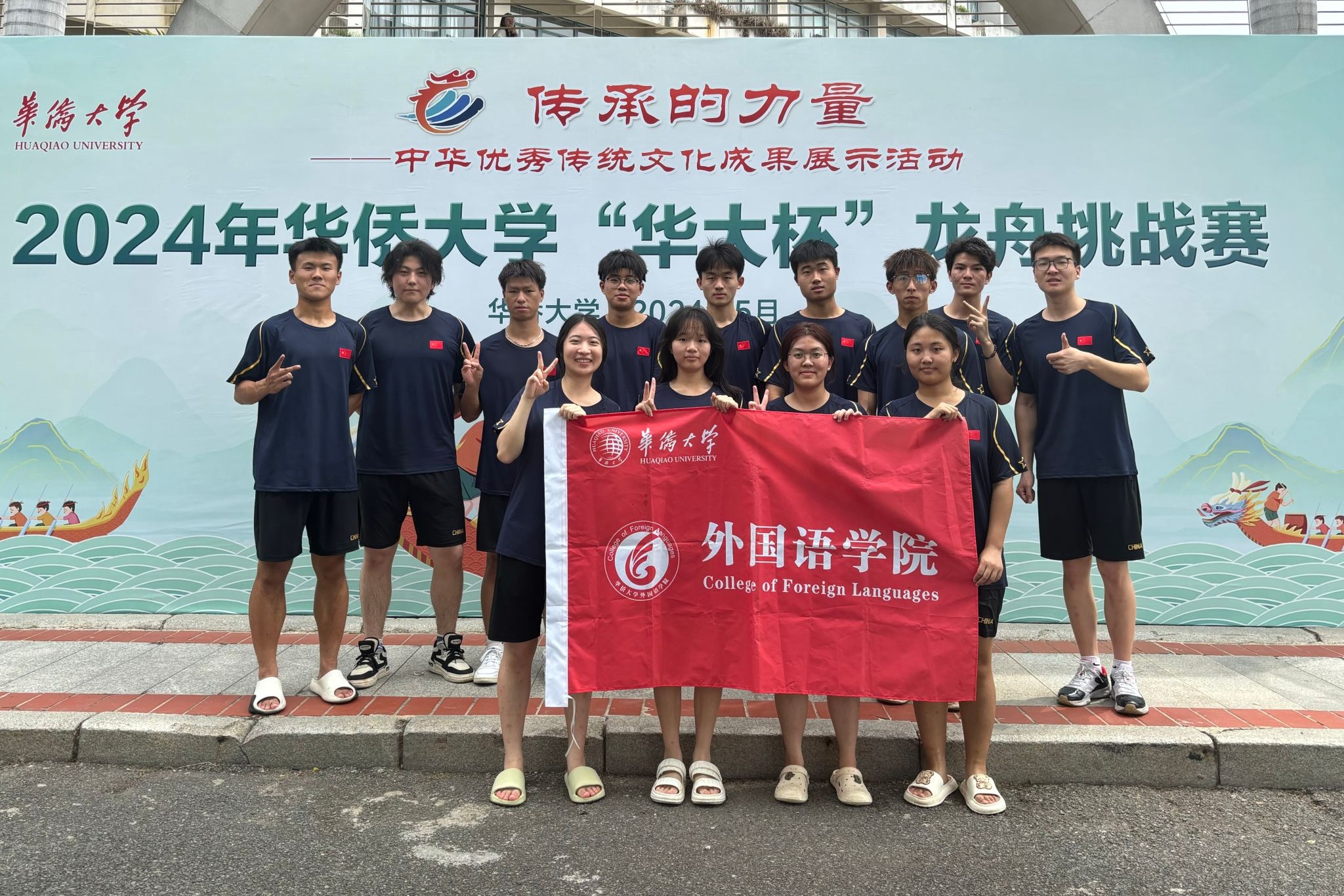一声令下,龙舟划破湖面,鼓手把握节拍,永利23411集团的同学挥舞船桨,12名学院的境内外学子及辅导员共同划向终点,最终团队以2分58秒的成绩斩获第十名的优异成绩。今年是外语学院师生第一次参赛,祝贺他们取得好的成绩,你们在赛场上拼尽全力,展现了外语学子的良好形象!