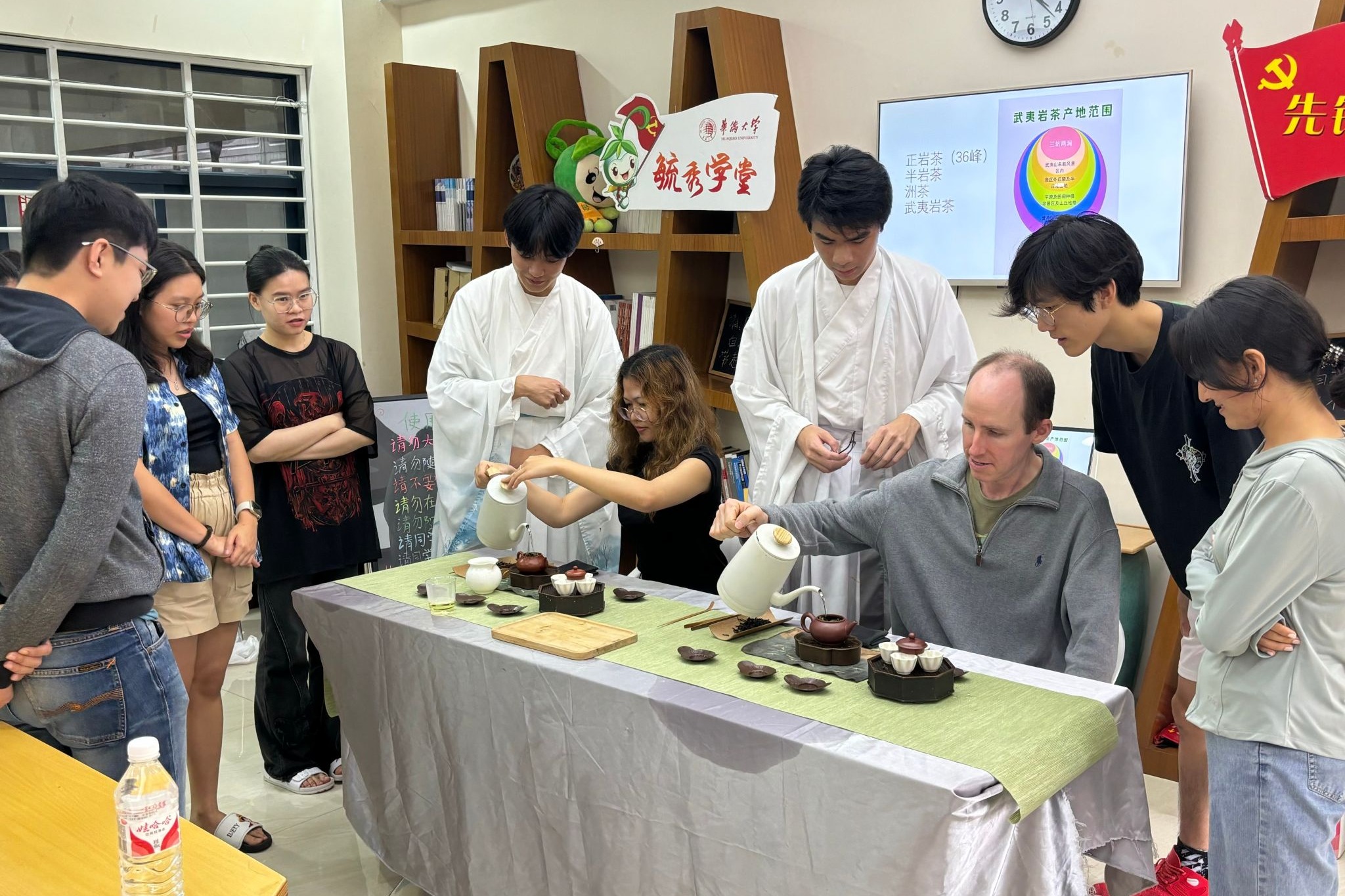 5月26日下午,学院在厦门校区举行“品茗悠然雅韵,体验传统茶艺之美”活动,通过现场讲茶与品茶、茶艺展示等环节内容吸引了来自美国、泰国、马来西亚、印度尼西亚、缅甸、越南、中国香港等国家和地区的境内外师生参加。