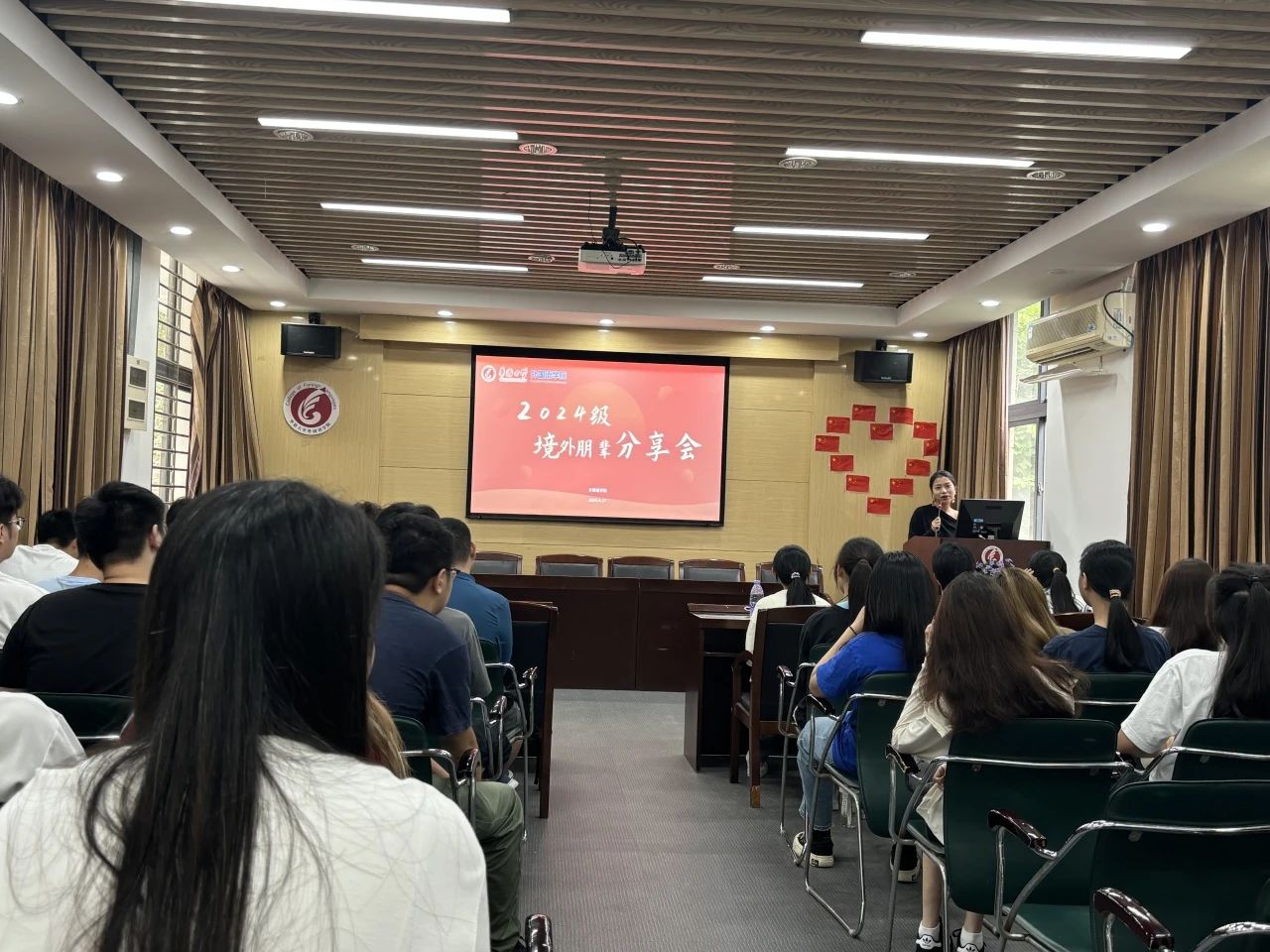 9月17日上午,2024级境外生朋辈经验分享会在外语楼举行。来自中国香港的21级英语专业陈妍钏同学、来自中国台湾的23级英语专业白宇安同学及作为阿联酋华侨的21级日语专业张迈同学,就各自专业的学习技巧与方法、如何充实与丰富自己的大学生活、学生组织与社团等多层面内容,向境外生朋友们展开分享与交流互动。