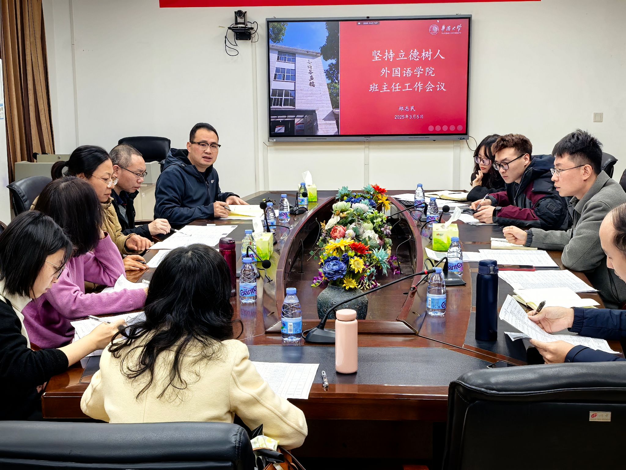 2025年3月5-7日,外语学院分年级分别召开四场期初班主任工作会议,学院党委书记郑志民、团委书记李守超、全体班主任和辅导员参加会议。本次会议采取年级班主任座谈会的形式进行,分别针对各年级工作要点和各类案例进行专题研讨。