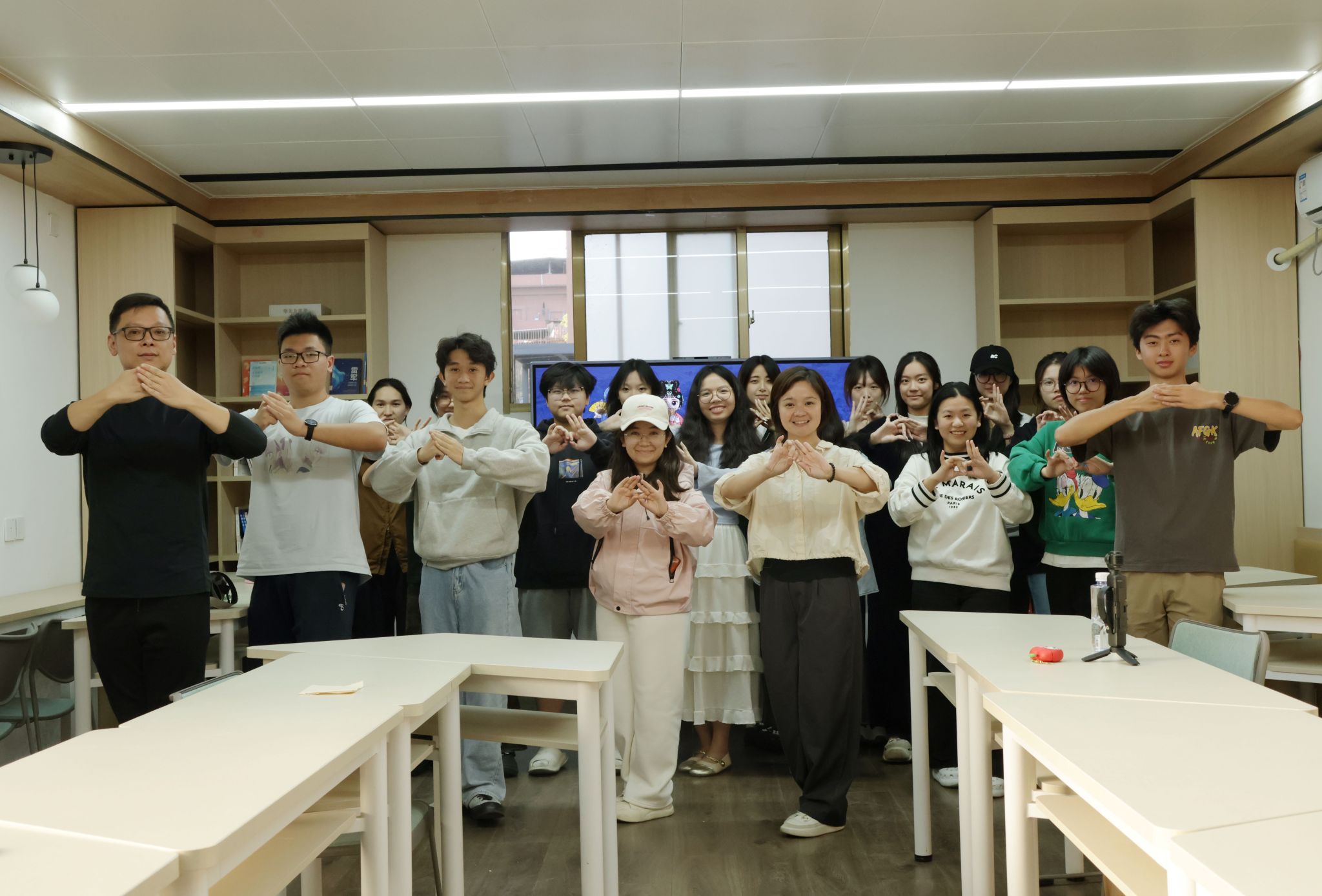 在技艺讲解环节,廖淑云与宋晓佳细致阐释了梨园戏“十八步科母”的规范与美学内涵。从台步的轻重缓急,到身段的刚柔相济,每一个看似简单的手势指法背后皆藏有深意,力度、角度的细微差别都能传递出丰富的情感张力。随后的体验环节中,两位老师耐心指导同学们模仿学习基本动作,帮助大家在实践中加深对梨园戏表演艺术的理解。