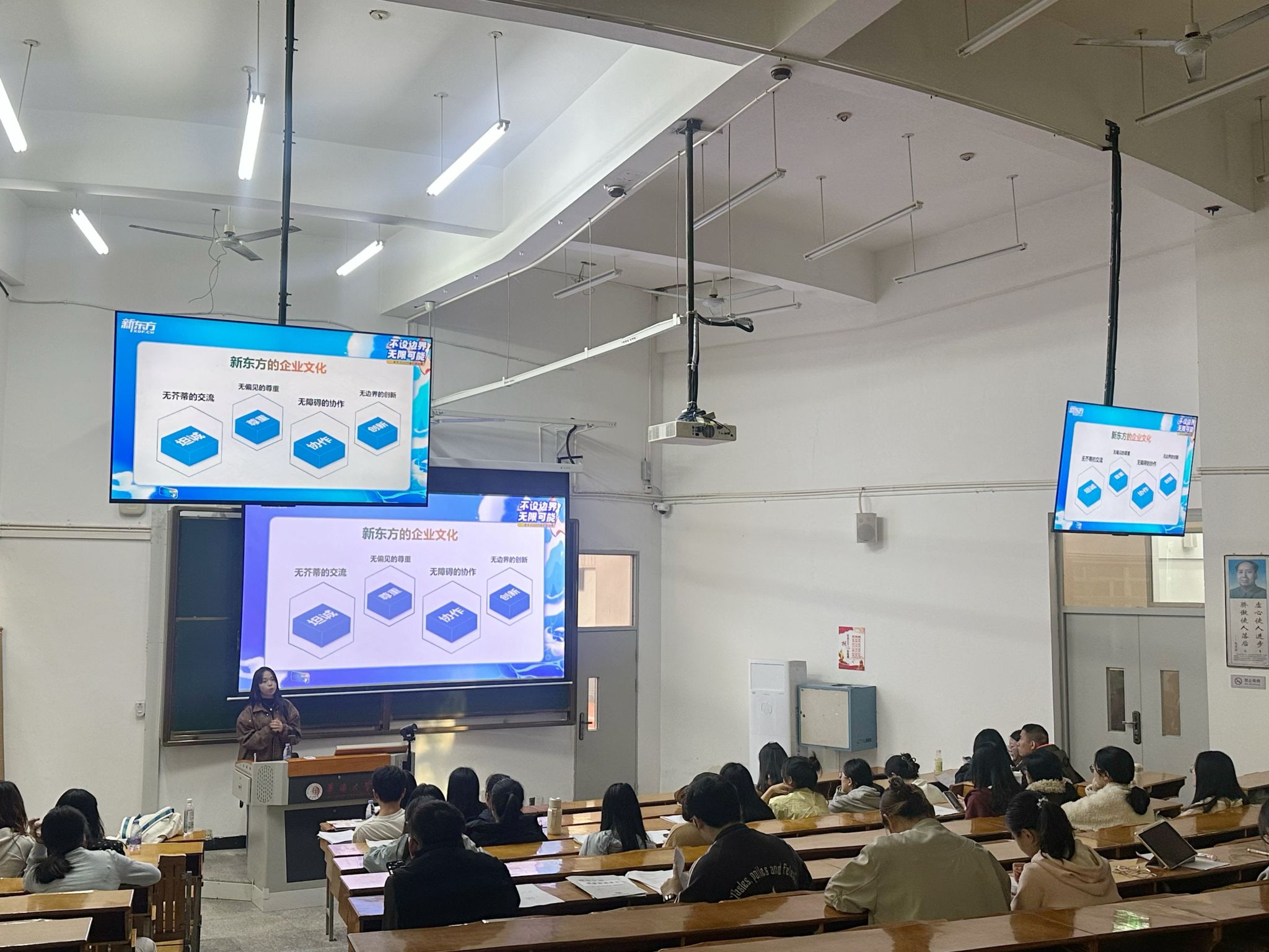 招聘会现场气氛热烈,企业宣讲环节内容丰富。各家企业HR通过图文展示、案例分享等形式,系统介绍了公司发展历程、企业文化、业务布局及具体岗位需求,帮助同学们深入了解行业动态与职业发展路径。