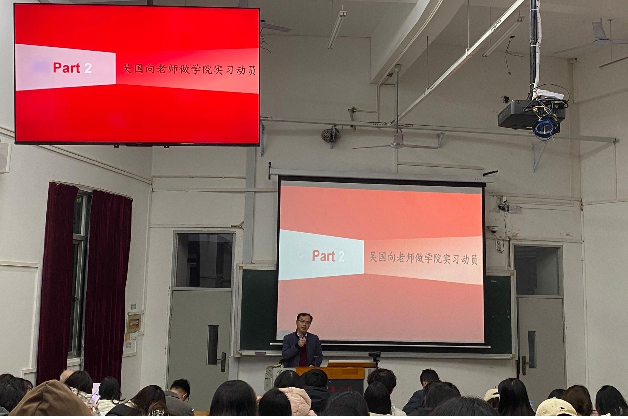 最后学院副院长吴国向和党委书记郑志民分别围绕实习、就业开展动员强调。吴国向老师围绕着实习安全、毕业论文进度与质量问题进行说明。郑志民书记以“过明白 过精彩”为内容给即将毕业的同学提出三点建议:希望同学们珍惜大四最后的校园生活,顺利且精彩的度过,认真核查好自己的毕业学分与各项成绩,做好规划,认真对待毕业论文与未来职业规划选择,做好求职准备提前制作一份漂亮的简历;希望同学们注意安全,无论是人身财产安全、网络安全、交通安全还是个人信息安全都要警惕对待,切实提高自身的安全防范意识,谨防求职诈骗;希望同学们放松心态,一切都是最好的安排。面对大四的各种压力和挑战,保持积极的心态去面对一切挑战,身体健康是第一位的,只有健康的心态与体制才能保障其他各项工作的开展。