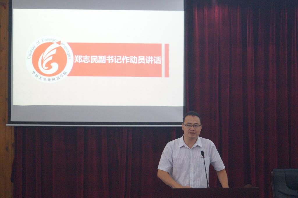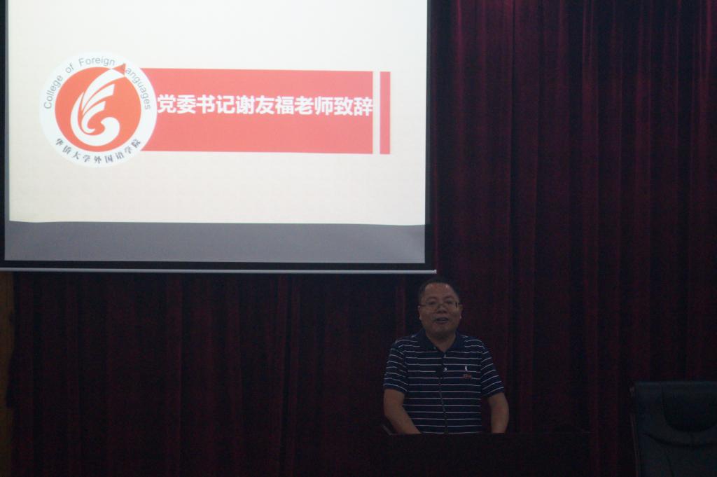侯国金教授以其精湛的英语演讲表达了对新生的祝贺和期望,希望同学们在学习本专业语言的同时,也能多积累一些其他语言的阅读量。并解释了在当今深入改革、深入开放的时代,在国际交流、国际贸易十分频繁的经济背景下,学习外语的重要性。他讲到,大学学习并不只是高中学习的延续,而是一种全新的模式。要学会高效地使用所学语言,做自己学习的主人。曾丹同学的同声传译也向大家展示了学院的多元教学成果。现场掌声阵阵,气氛十分活跃。