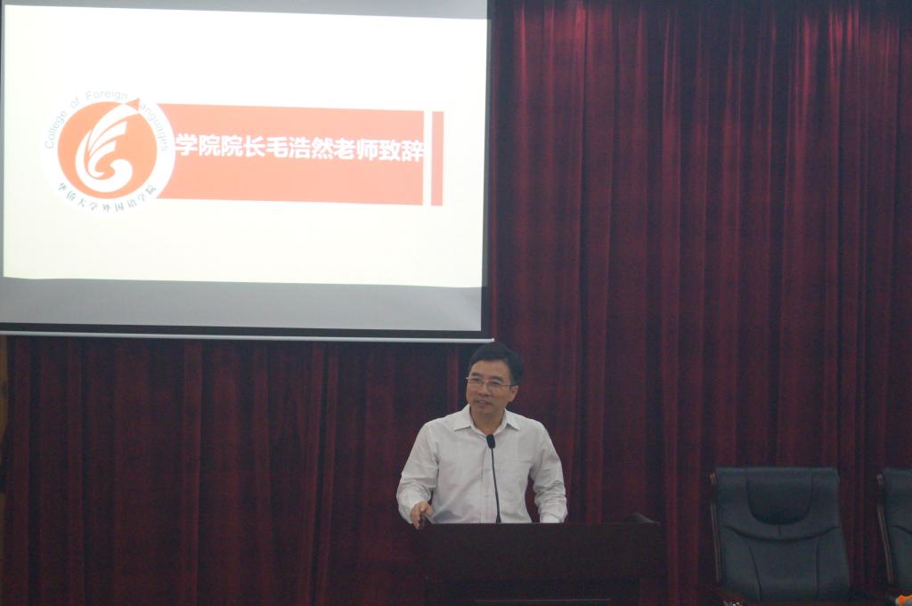 院长毛浩然发表了题为“不忘初心,Delete前行”的讲话,表达了对新生的期许。毛院长表示唯有不忘初心,才能有的更远,只有Delete前行,才能走得更快。 面对繁琐的事务,要学会delete不是最重要的事情,认识事务的优先级。面对纷繁的生活,要学会Delete不是忍无可忍的生气,成熟不在于年龄,而在于你所能承担的责任。面对突发的事件,要学会Delete被危机裹挟的慌乱,只要思想不滑坡,办法总比困难多。面对要求提高的社会,要学会delete逞口舌之快的习惯,脚踏实地,做好实事。面对茫茫书海,要学会delete不值得看的书籍,跟名师,读好书。面对团队协作日益盛行的社会,要学会delete我行我素的坏习惯,注重协作,高效工作。面对选择众多的生活,要学会delete勤奋最重要的理念,选择比努力更重要,方向错了,止步就是进步。面对日新月异的社会,要学会delete事事必争的念头,调整心态,健康生活。面对语言类专业,要学会delete只学外语的误区,语言类专业同样需要培养其他领域良好的专业素养。面对拥有无限可能的未来,要学会delete不切实际的梦想,明确自身,扬长避短。面对重视效率的社会,要学会delete不应有的玻璃心,铭记良药苦口,忠言逆耳。面对人才林立的社会,要学会delete没水平的噪音,提升自我,永无止境。毛浩然院长的演讲幽默而富有指导意义,为新生的大学生活指明前进的方向。