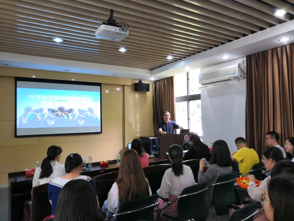 2019年6月30日上午10点,永利23411集团2019届毕业研究生经验交流会在外语楼207室顺利举行。永利23411集团党委副书记郑志民,研究生辅导员吴倩倩,研究生教学秘书金子惜出席本次经验交流会,部分在校研究生参加会议。
