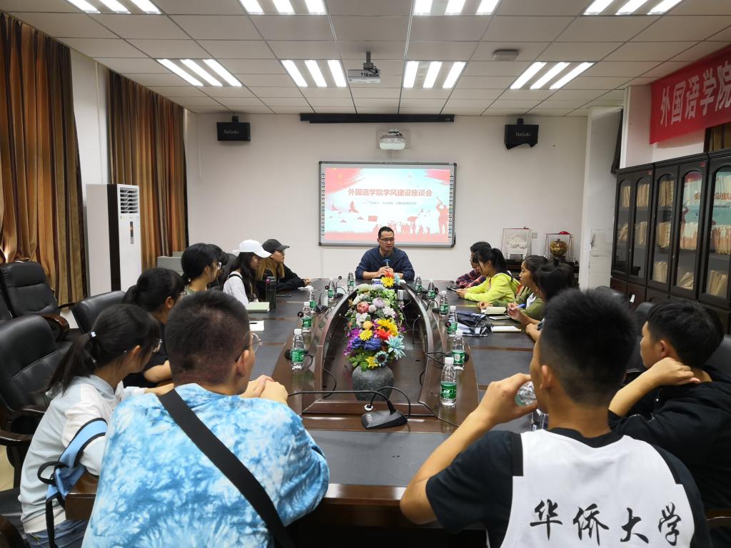 郑志民副书记首先介绍了学院“五无·四有”学风建设专项工作,即以培养“有理想、有担当、有计划、有行动”四有青年为目标,以争创“五无”典范为行动,即争创“无手机、无迟到、无旷课课堂”、“无餐饮教室”、“无作弊班级”,希望各班级在初入大学课堂之际,积极调整学习状态,今天这个座谈会召开的目的就是收集同学们关于学院学风建设的建议,特别是了解目前各班级同学的学习情况。