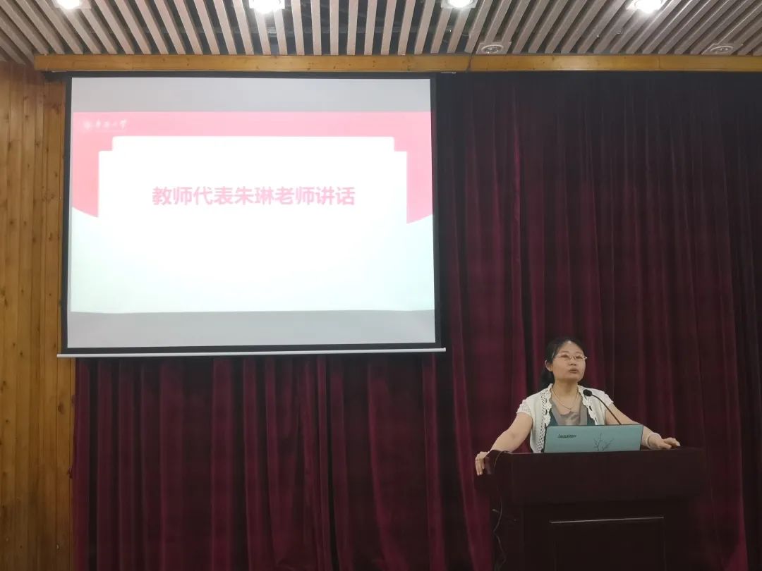 优秀教师代表朱琳从“心”出发,向同学们提出“不忘初心、秉持真心、永葆诚心、永驻童心”四点期望,希望大家能够快乐学习,再铸辉煌。