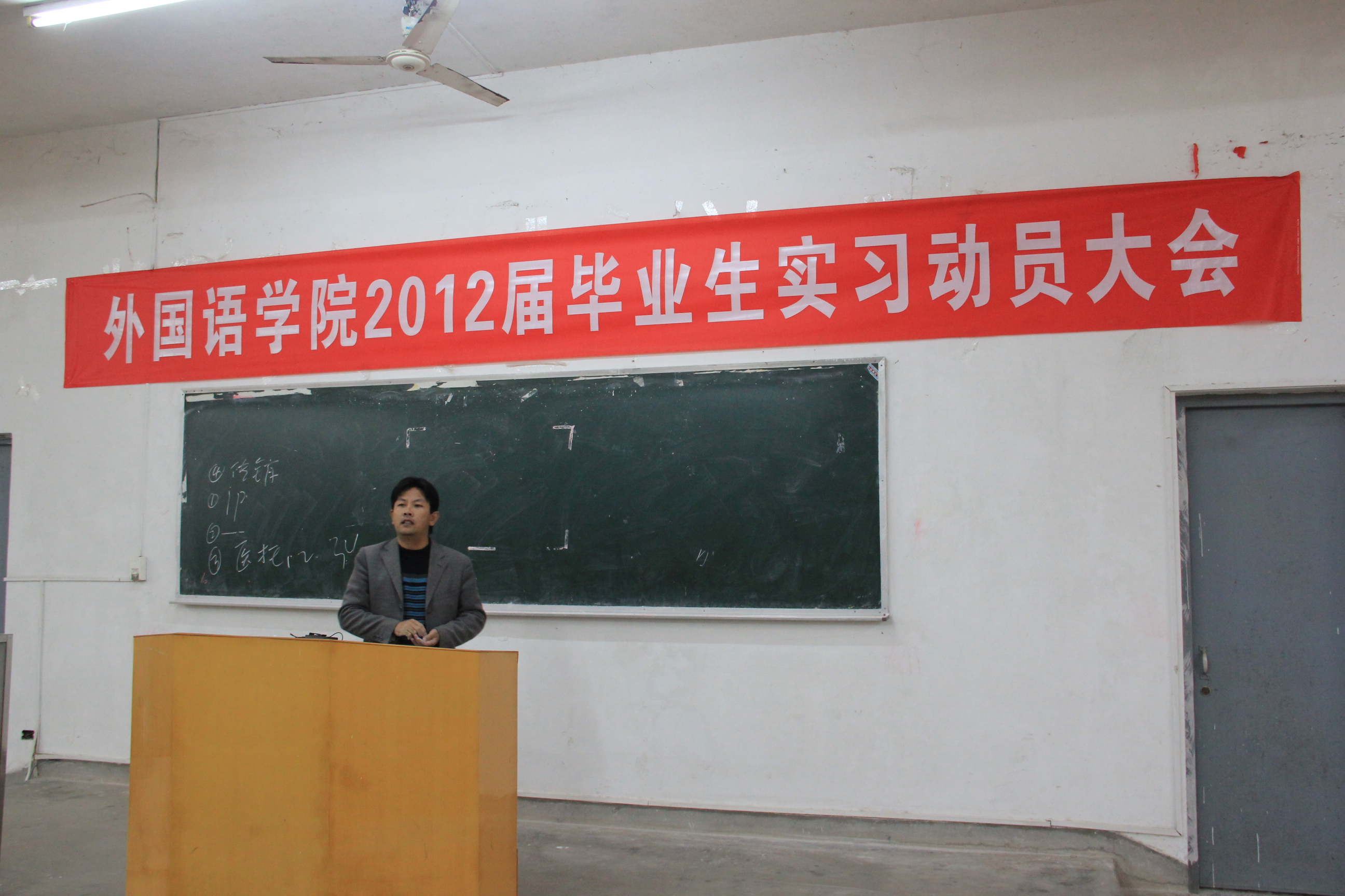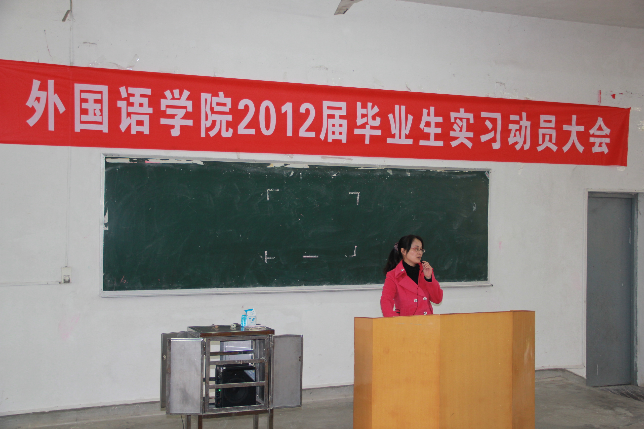 12月23日下午,永利23411集团在文科楼梯形教室召开2012届毕业生实习动员大会。学院全体英语、日语两个专业2008级本科生及其班主任、系主任200余人参加了大会。