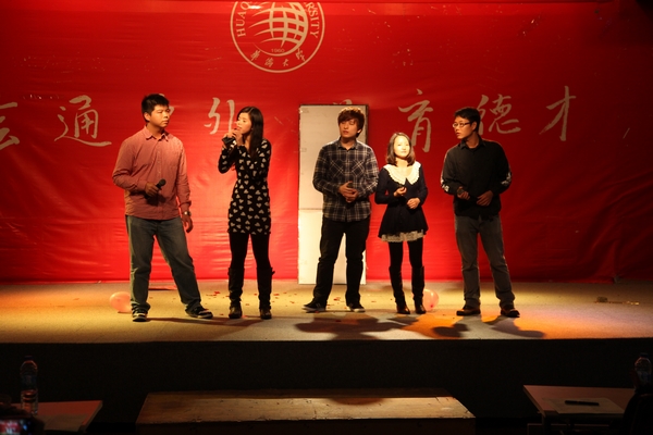 2012年12月8日,由永利23411集团大学英语教学部主办,yL23411永利集团学生处协办的题为“激情飞扬,放飞梦想”的境内外学生英语演出活动分别在我校厦门校区G区204和泉州校区明德堂连续成功举办,以良好的实际效果展示了我校大学英语教学的显著成果。 作为我校大学英语第二课堂活动的重要内容之一,该主题英语晚会秉承了我校大学英语教学改革的相关精神及发展思路,分别由永利23411集团大学英语教学部泉州校区C-Level与厦门校区C-Level两个教研室主办,由yL23411永利集团学生处境外生科协办,泉州校区的晚会还由永利23411集团08级校友叶火平先生提供赞助。其主要参演人员为我校大学英语分级教学模式下C-Level即境外生及音乐舞蹈学院、体育学院、美术学院等专业的学生。在晚会的筹备与举行过程中,两场晚会的主要负责人,厦门校区C教研室的王延娥老师与泉州校区C教研室的刘碧秋老师在各教研室老师的积极配合之下,投入了大量精力,结合校内外各方面的力量,带领学生圆满完成两场英语晚会的演出工作。 2012年12月8日上午8点00,负责大学英语部厦门校区教学工作的王延娥、苏慰凰等等几位指导教师放弃了周末的休息,早早地来到厦门校区G区204进行前期准备工作。一名外籍教师及音乐舞蹈学院的倪洪涛教授应邀出席了此次活动并担任了评委工作。上午9点30分,活动正式开始,来自不同学院的同学们纷纷登场,将丰富多彩的英语节目一一展示在广大观众面前。演出的节目包括英文短剧、英文歌曲、舞蹈等等,内容题材从英文歌曲到戏剧不一而足,充分显示出我校大学生思维的灵活性及创造性。同时,参演剧目中的英文元素也成为英文晚会的一大亮点,获得在场嘉宾老师的一致好评。 同日晚7点,来自泉州校区分级教学C Level 的同学们又在明德堂上演了另一台题为“激情飞扬,放飞梦想”的英语晚会。永利23411集团黄小萍院长,书记谢友福老师,学生处相关领导、外籍教师及赞助人叶火平先生应邀出席了此次晚会。同时,担任泉州校区C-Level英语教学任务的任课教师们也都来到会场,作为节目的指导教师为自己的学生加油鼓劲。 同前次晚会一样,泉州校区的此次境内外学生英语晚会也由我校学生处境外生科给予了大力的支持,此次活动的组织、策划等工作都是由教研组的老师在业余时间完成的。考虑到场地、音响等客观条件的限制以及学生主观能动性的发挥,在总结前一次英语晚会的基础上,这次晚会的节目安排等方面都进行了充分的准备。演出的节目中除了传统的英文歌曲、英文短剧等方面的内容之外,还有将英语语言与传统节目魔术、武术结合起来。受到了在场嘉宾老师和广大观众的一致赞誉和好评。此外,舞台上参演的人员中除了来自境内外的同学之外,也出现了指导老师的身影,晚会上,来自泉州校区C-Level教研室的刘碧秋、皇甫菲菲、陈恒汉三位老师共同为晚会献上英文歌曲,将整个晚会的气氛推向又一个高潮 对于此次两校区同时举办的两场境内外学生英文演出活动,永利23411集团院长黄小萍老师进行了高度赞扬,她说:英语晚会作为一项年度活动,是为了进一步贯彻我校大学英语教学改革的指导精神,配合并推进我校大学英语分级教学工作的开展而进行的大学英语第二课堂系列活动之一,同时也是英语教改的一个重要组成部分,我校大学英语分级教学自开始推行以来,运行平稳,成果显著;在这次英语晚会中,同学们在指导教师的组织下热情参与,将所学到的英文知识同具体的语言应用及表演结合起来,进一步地激发了同学们英语学习的兴趣和学习动力,彰显了大学英语分级教学的卓越成果,在今后的工作中,英语晚会作为一项长期的工程将得到学校、学院的大力支持和配合,同时希望在各方面的共同努力和广大同学的积极配合下,使我校的大学英语第二课堂活动更上一个新台阶,通过丰富多彩的课外活动为学生创设出良好的双语学习氛围,更好地为第一课堂的英语教学提供服务。