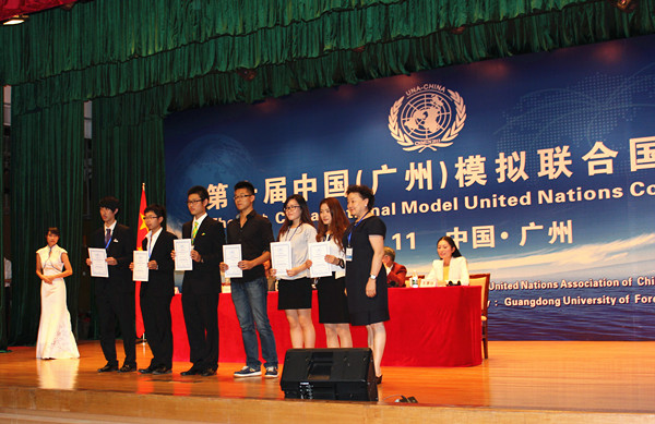 11月8日至10日,第十届中国模拟联合国大会在广东外语外贸大学北校区举行。大会吸引了来自澳大利亚新南威尔士大学、香港大学、香港中文大学、澳门大学、北京大学、中国人民大学、浙江大学等国内外116所知名高校、近500名代表参加。大会模拟第57届联合国妇女地位委员会,主题为“消除和防止针对妇女与女童的一切形式的暴力”,并分为3个委员会分别进行对相关议题的讨论。 我校代表团由校教务处副处长黄永琴、永利23411集团党委副书记林庆祥和指导老师陈嘉静带队成行;选派由法学院10级法学专业学生田孝明、经济与金融学院11级国际贸易专业学生李炜晨、工商管理学院11级市场营销专业学生王力3名同学组成的代表队与会,模拟约旦国家分别参加第一、第三委员会的会议;田孝明作为单代表参加的第三委员会,旨在关注2015年后国际发展议程应包含的主要性别平等问题;王力和李炜晨作为双代表参加第一委员会,重点讨论“防止针对妇女与女童的暴力”的相关议题。最终,我校代表凭借出众的英语表达能力、广博的综合知识以及良好的国际视野,给与会的外交官、评委、师生留下深刻印象,荣获由中国模拟联合国协会颁发的“杰出立场文件团体奖(Outstanding Position Paper)”,延续了我校在该项赛事的优异表现。 据悉,中国模拟联合国大会(CNMUN)由中国联合国协会与澳大利亚人权与机会均等委员会合办,每年都会由一所高校承办。它于2004年设立,并于每年11月中上旬举办,先后在外交学院、西北工业大学、四川大学、黑龙江大学、厦门大学、北京师范大学、四川外语学院、长沙国防科技大学、天津外国语大学连续成功召开了九届。