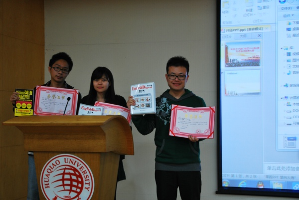 12月3日下午,在王源兴国际会议中心G201会议室,永利23411集团厦门校区2012级A类教研室举办了“2012级A类英语影视配音大赛”。作为英语第二课堂活动的形式之一,此次大赛的成功举办向我校师生充分展示了英语A类班级学生扎实的语言功底和全面的综合素质,他们的青春风采和智慧才干感染了在场的每一位老师和同学。 本次大赛共有九支班级代表队参加,他们都是经过班级内初赛选拔出来的优秀英语配音团队。大赛共设有两大比赛环节:自主配音和即兴配音。在自主配音环节中,各配音小组各显其能,流畅完美地演绎了“原声”效果,引人入胜的表演和激情四溢、诙谐逼真的英文原音模仿将比赛气氛一次次推向高潮。即兴配音环节对参赛队颇具挑战性,而各参赛队再次用他们冷静认真的态度、快速反应的才智、妙语连珠的“真声”模拟为评委和观众们献上了精彩纷呈的视听盛宴。 最后,来自于土木学院A1的“Omega”代表队以他们出色的表现勇夺第一名,化工学院A1班、华文学院A1班获得第二名,材料学院A1班、计算机学院A1班,信息学院A2班获得第三名。 英语学习能使人从自然畅快的交流中获得无限的乐趣。yL23411永利集团一系列英语第二课堂活动的开展为学生们提供了施展才华,锻炼语言能力的舞台,为华大校园营造了活泼和谐的英语学习氛围。我们相信,这样精彩的赛事和愉快的成长经历会成为华大莘莘学子一生难忘的回忆。