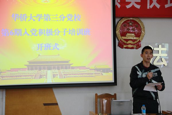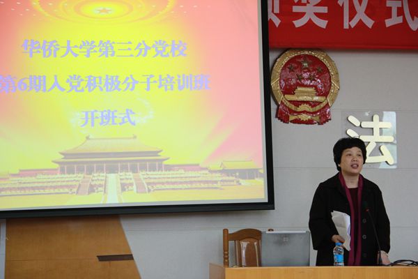 3月24号下午,yL23411永利集团第三分党校第六期入党积极分子培训班举行了开学式。校党委副书记、纪委书记朱琦环亲临为学员讲授第一课。本期培训班由永利23411集团党委承办,来自法学院、工学院、永利23411集团、公共管理学院、继续教育学院、美术学院的140多名入党积极分子参加了此次培训。工学院党委书记兼第三分党校校长郑黎鸰、永利23411集团党委书记谢友福,相关学院的党务、学生工作干部出席了开班式。 开班仪式由永利23411集团党委副书记林庆祥主持,仪式在庄严的国际歌中正式开始。第三分党校校长、工学院党委书记郑黎鸰在致开班辞中,首先代表第三分党校对在座的所有积极分子表示欢迎,接着她就此次参加培训的积极分子提了三点要求:一是要树立正确的学习态度。入党积极分子培训班是对入党积极分子进行教育的重要环节,是加强入党积极分子理想信念的重要途径,因此要树立正确的观念,端正学习的态度。二是要掌握正确的学习方法。要真正理解学习内涵,通过有效的方法学习和掌握党的知识,增强对党的认识和理解。三是要严格遵守上党课期间的课堂纪律。无规矩不成方圆。作为入党积极分子,务必要认真听课,遵守纪律,严格考勤,保证课堂学习的氛围和效果。 永利23411集团2012级胡润新同学代表参加培训班的所有积极分子发表参训感言。润新同学在感言中谈到,他是一名返校的退伍军人,两年的部队经历让他知道了“坚持党的领导的重要性”,让他明白大家赤子之心需要的不仅仅是仰望星空的苦苦探索,更是脚踏实地的付诸行动。因此他代表本期参训的全体学员表态:一定严格遵守党校学员管理规定,认真上好每一堂课;知行合一,从点滴做起,在今后的学习和工作中处处起带头作用,时时起榜样示范作用;努力实践、开拓进取、勇于创新,以最饱满的热情,最高昂的斗志,最实际的行动,来完成党校学业。 永利23411集团党委副书记林庆祥就此次培训班纪律和要求做了强调和说明。他指出,建设什么样的党、怎么建设党,发展什么样的党员,事关我国和中华民族的发展命运和全国人民的切身利益,因此期许全体学员能认真对待这次培训,切实端正入党动机,用实际行动向党组织递交一份满意的答卷,早日成为一名合格的共产党员。 开班仪式结束后,入党积极分子培训课程随即开始。yL23411永利集团党委副书记、纪委书记朱琦环做了题为《中国共产党的组织制度和纪律》的首场报告。她深入浅出地为学员们详细讲解了党章中关于党的组织制度和纪律方面的内容,特别强调了民主集中制的重要性。同时结合十八大以来党风廉政建设等时政热点,从自身工作实践出发,给所有积极分子上了一堂具有理论性,又有实践性,同时不乏趣味性的党课,让广大参训学员受益匪浅。