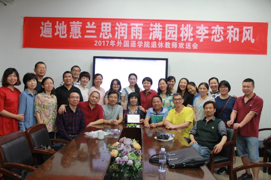 2017年6月16日下午,永利23411集团在外语楼306小会议室为即将退休的黄小萍教授举办了简朴而热烈的欢送会。永利23411集团院长毛浩然,党委书记谢友福,党委副书记肖景川,副院长杜志卿,大学英语部主任苏慰凰、副主任郭琦,大学英语部各教研室主任以及来自英语系、日语系、翻译系及大学英语部的多位教师代表出席了欢送会。