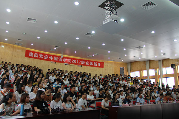 2017年9月18日上午,永利23411集团2017级迎新大会在庄为烜报告厅召开。学院院长毛浩然教授、党委书记谢友福副教授、副院长杜志卿教授,翻译系主任陈历明教授、英语系主任吴国向副教授,团委书记李莹老师、教学秘书吴翊华老师、辅导员周思博老师,17级全体班主任出席会议,17级全体新生、研究生参加会议。