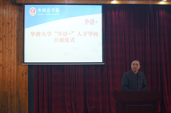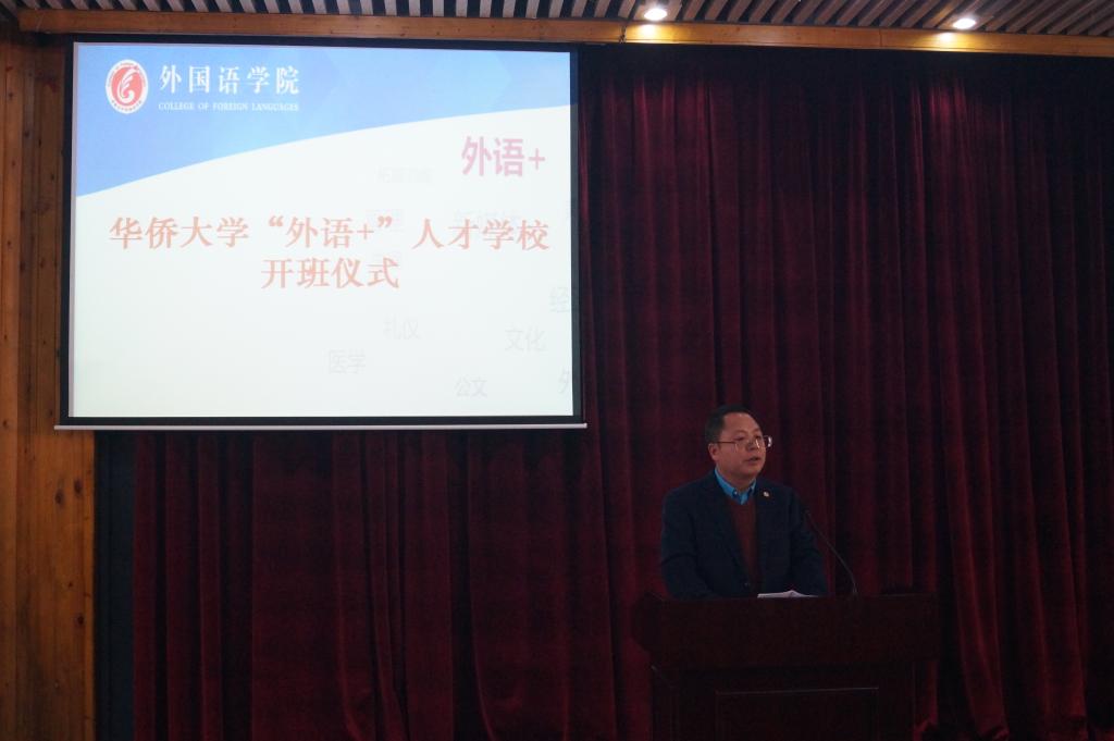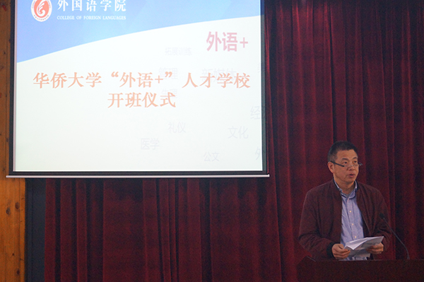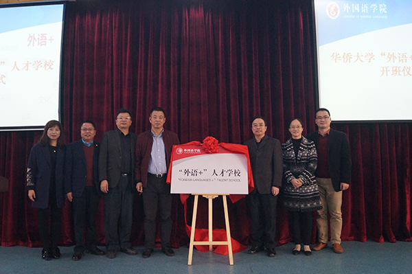 接着,吴季怀副校长和毛浩然院长共同为“外语+”人才学校举行揭牌仪式,并宣布“外语+”人才学校正式开班。