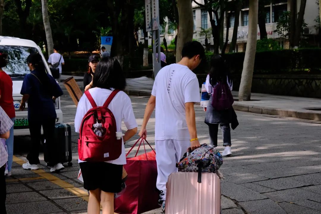 为方便新生入学,学院招募数十名名志愿者分时段分批次引导新生。他们承担着行李搬运、消毒清洁、宿舍引导等服务,用热情与微笑陪伴大家。天气炎热,志愿者们却没有丝毫懈怠,虽然有些许疲惫,却仍然保持高度的投入。