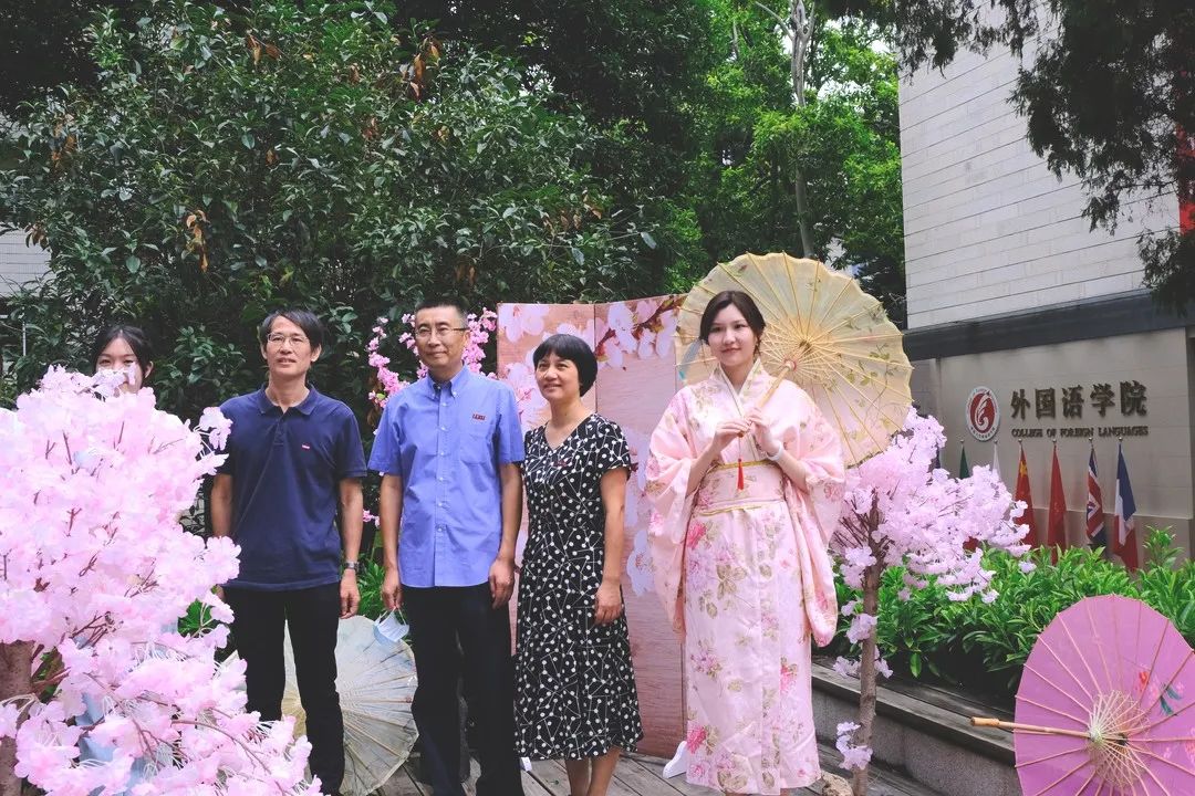 悠悠我心,虽不是樱花烂漫的日子,但和风和樱花的背景墙带你走进日本街道上。日本文化展是学院品牌活动“春之声”的经典项目,今天在迎新现场,低眉浅笑、温婉和善的学姐,英气逼人,温文尔雅的学长向新生展示日式和服,小萌新们可以进行和服体验和拍照合影,想象自己置身于充满异国风情的京都街头,红枫遍地的小径,无不与动人的和服相得益彰。