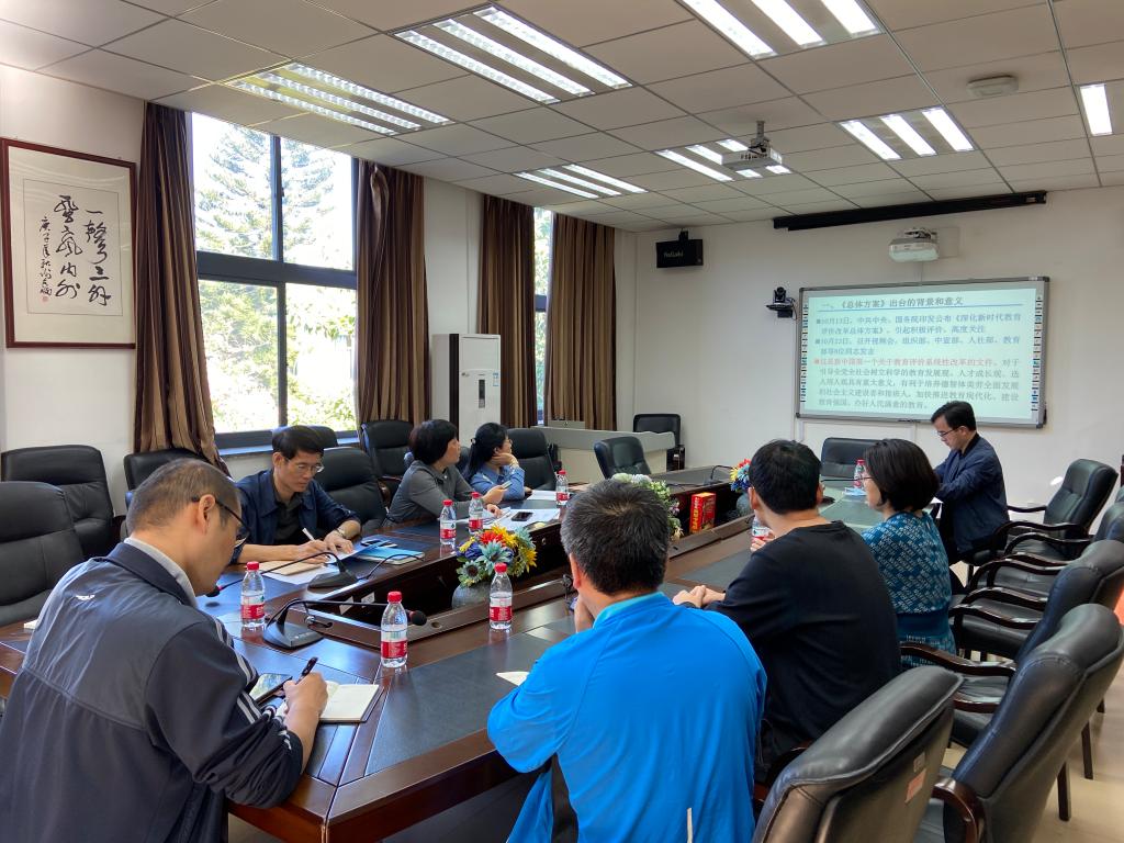 首先李璐岚书记传达了《深化新时代教育评价改革总体方案》的相关文件精神,强调要坚持立德树人,牢记为党育人、为国育才使命,健全立德树人落实机制,引导确立科学的育人目标和评价体系。希望通过中心组和党政领导的专题会议学习,凝聚共识,多渠道向全院师生传达《总体方案》的精神,围绕推进教师践行教书育人使命,促进学生德智体美劳全面发展等进行充分调研和征求意见,为新时代教育评价改革做好准备。与会同志重点学习了此次教育评价改革方案的出台背景、宗旨、定位、总体要求和重点任务。据悉这是新中国第一个关于教育评价系统性改革的文件。