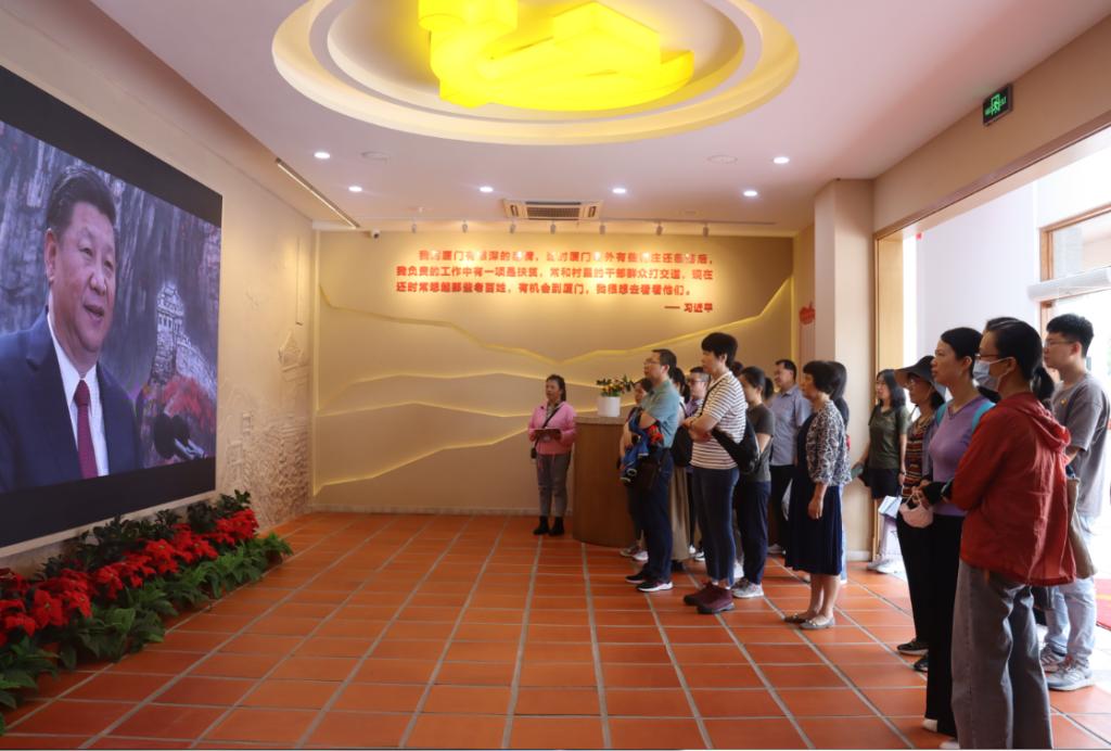 首先,一行人参观了高山党校初心使命馆。高山党校初心使命馆是“高山初心之路”的首站。馆内由“序厅”“两上高山情缘”“厦门探索足迹”“鹭岛红色印记”“践行特区使命”五大展厅组成。通过现场教学讲解再现了习近平总书记当年两上高山访贫问苦、指导高山脱贫的高山情缘,各位教师党员从中深切感受到了习近平总书记与广大干部群众并肩奋斗时的热情与期盼。