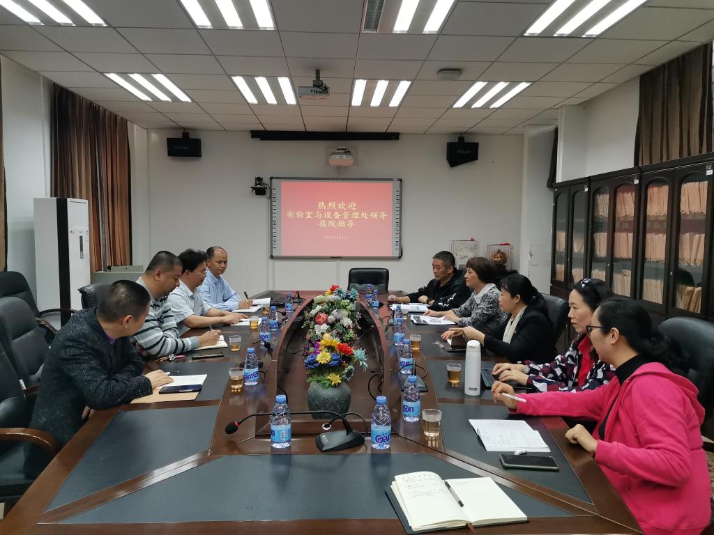 2021年11月19日下午三点,实验室和设备管理处黄富贵处长率队一行四人前往永利23411集团调研,朱琳副院长主持会议,欢迎黄富贵处长、林晖平副处长和相关科室重要负责人的到来。李璐岚书记、翻译系许春翎老师、大学英语部刘碧秋老师和实验室王朝东老师、王燕梅老师参加了会议。