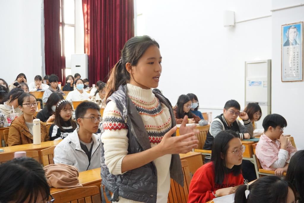 互动过程中,他也与同学们分享了大学的学习经验,学外语专业会遇到“越学越不懂”的情况,外语人更应把握好自身的使命,踏实认真钻研知识,做一颗“螺丝钉”。同时要时刻保持头脑清醒,心怀使命感与责任感,才能在对外文化传播中做一名合格的文化传承者和交流者。