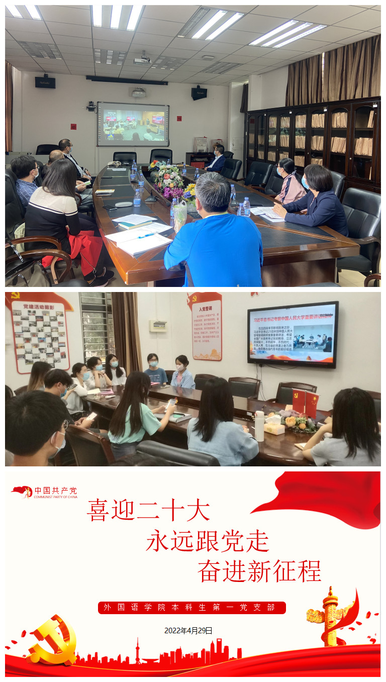 4月30日,本科生第一党支部在支部书记黄洁萍带领下召开“喜迎二十大,永远跟党走,奋进新征程”系列学习活动之“弘扬五四精神、担当时代使命”学习会。在观看总书记考察人大的视频之后,学习会分为4个模块:重温五四、以身许国;弘扬爱国主义精神、锤炼思想品德;坚定理想信念、勇于开拓创新;崇尚实干实学。各位党员认真学习、积极发言,黄洁萍指出,回望历史,勇于创新是五四运动给我们的一个启示。在五四运动的青年群体中,涌现出一大批忧国忧民、勇于创新的栋梁之材,他们以赤子之心回应了时代之问。进入新时代,我们的生活条件好了,但时代的发展进步让知识更新不断加快,社会分工日益细化,新技术新模式新业态层出不穷。这既为青年施展才华提供了广阔舞台,也对青年能力素质提出了新的更高要求。广大青年要勇于创新,深刻理解把握时代潮流和国家需要,敢为人先、敢于突破,以聪明才智贡献国家,以开拓进取服务社会。学生党员江雯丽表示,这是一个大有可为的时代,也是青年人大有作为的时代。牢记使命,让青春与时代主题同心同向,赋予青春以信念、以梦想、以奋斗、以奉献,作为当代青年一定要发扬奋斗精神,创造自己的光荣,把无悔的青春刻写在中华民族伟大复兴的历史丰碑上。