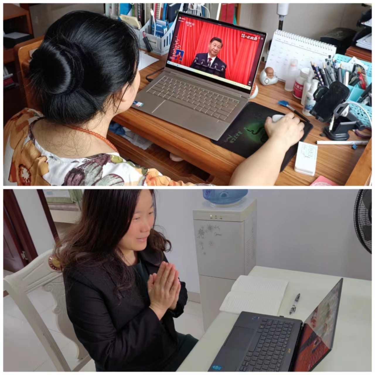 中国民主促进会华大总支委员王燕梅老师观看开幕会分享说,我们有幸见证了在党的领导下社会、经济发展各方面的蓬勃发展,作为民主党派人士,我们要始终接受中国共产党的领导,主动、积极参与社会经济建设,奋进新时代。作为侨校老师,我们除了上课以外,更有责任与义务用年轻人喜爱的形式从文化、美食、旅游等方面去讲好中国故事,让更多人能感受中华文化,传播中国能量。同时学院日语系教师郭木兰老师也自主观看学习了二十大的开幕会,认为本次大会非常有意义。