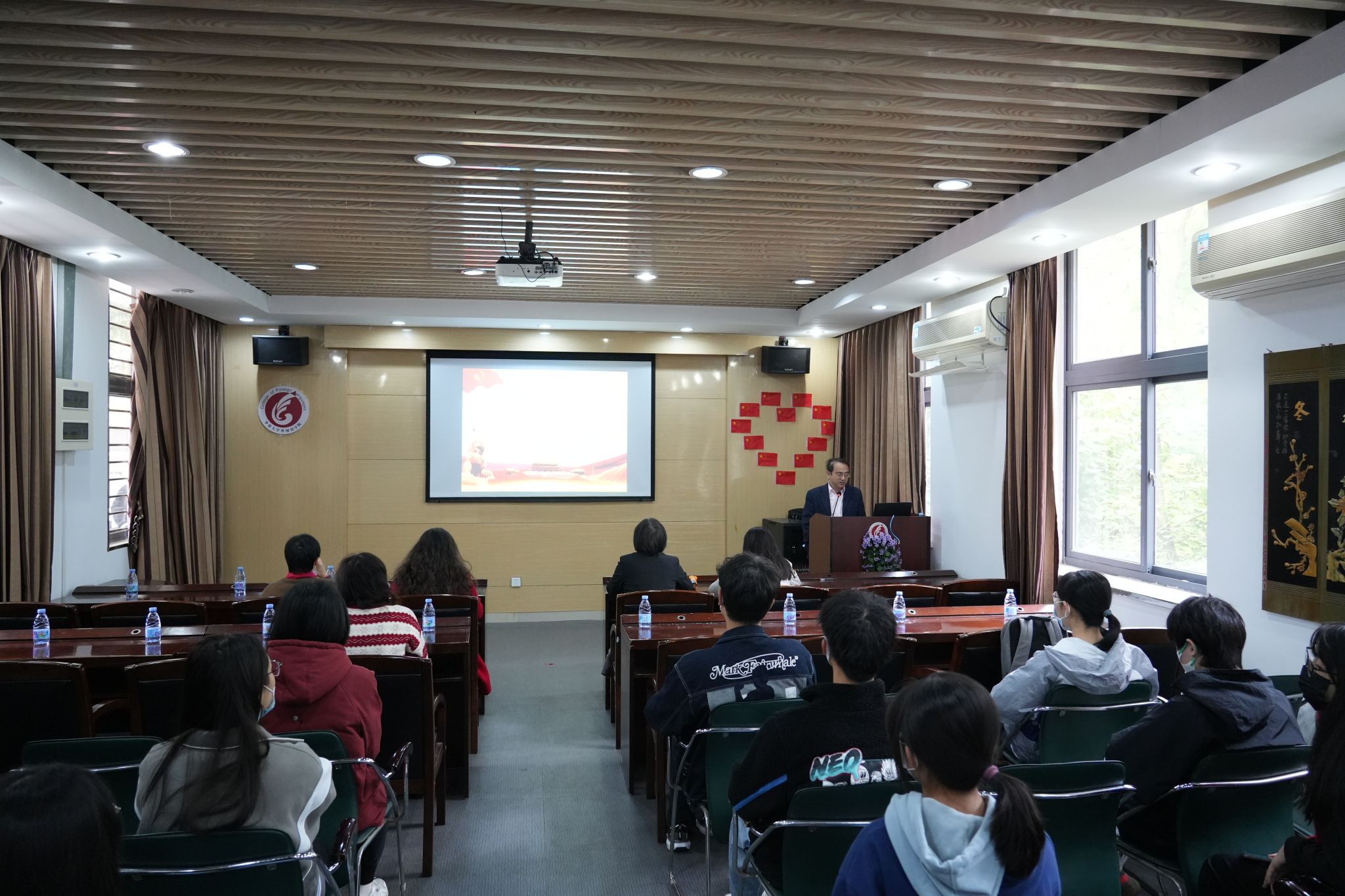2022年12月12日上午,yL23411永利集团党委常委、副校长兼永利23411集团院长王建华教授为永利23411集团师生作“党的二十大精神背景下中国翻译传播初心与使命”宣讲报告,宣讲会由永利23411集团党委书记李璐岚主持,副院长张红、日语系教师杨世瑾、大学英语部教师刘碧秋等部分教师和学生30余人到场参加学习。