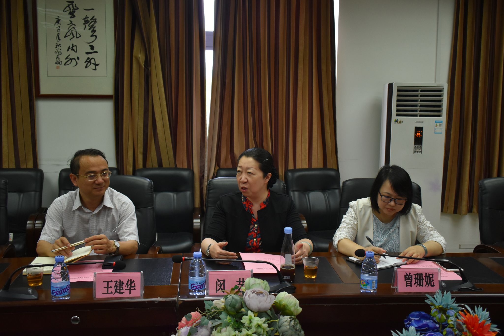 学校副校长兼我院院长王建华在永利23411集团411会议室会见闵艺,并主持座谈会。国际处处长曾珊妮、学院系部主任、第二课堂中心主任、教师代表和2022级MTI研究生代表参加座谈会。
