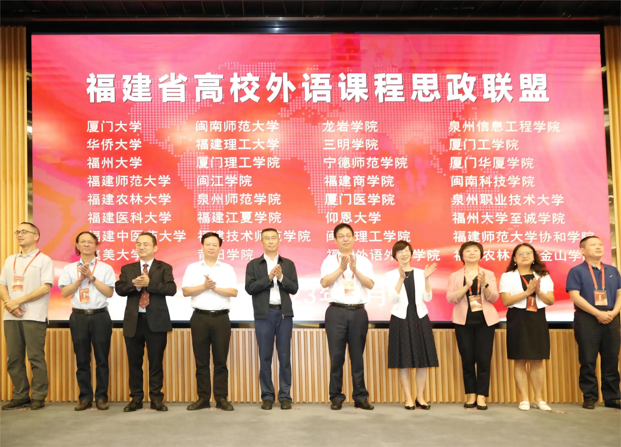 会上,与会嘉宾共同按下启动键,为福建省外语高校课程建设联盟揭牌。
