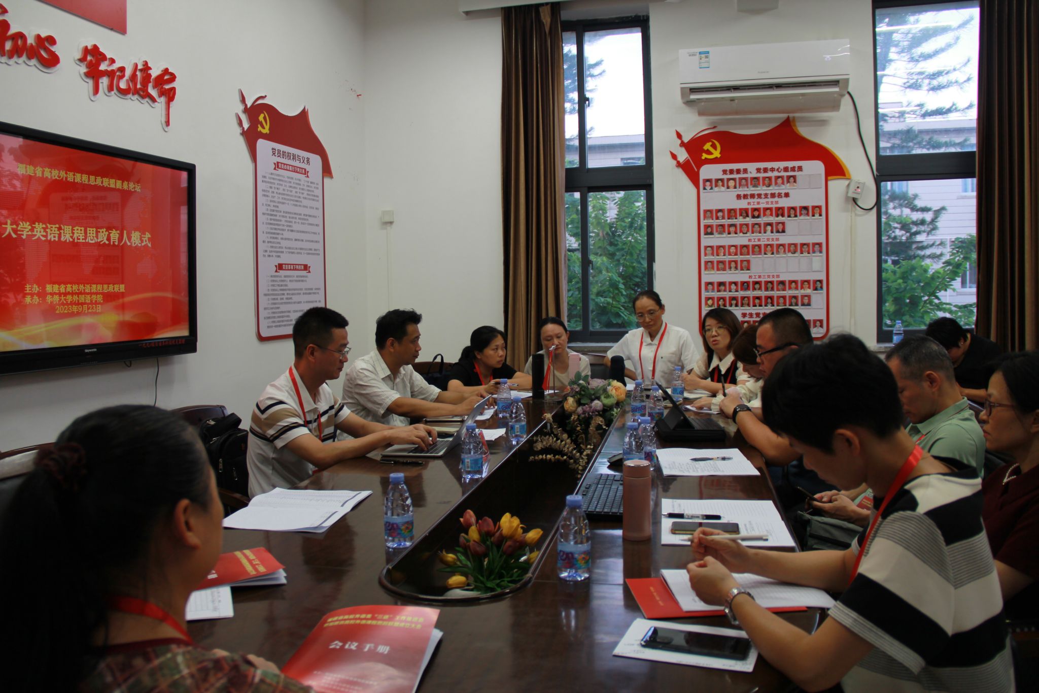 9月23日下午,于永利23411集团306会议室举行的福建省高校外语课程思政联盟圆桌论坛第二分会场,由我院大学英语部苏慰凰主任召集,集美大学的张志江副院长主持,各兄弟学院的领导、老师20多人参会,针对大学英语课程思政育人模式进行研讨交流。