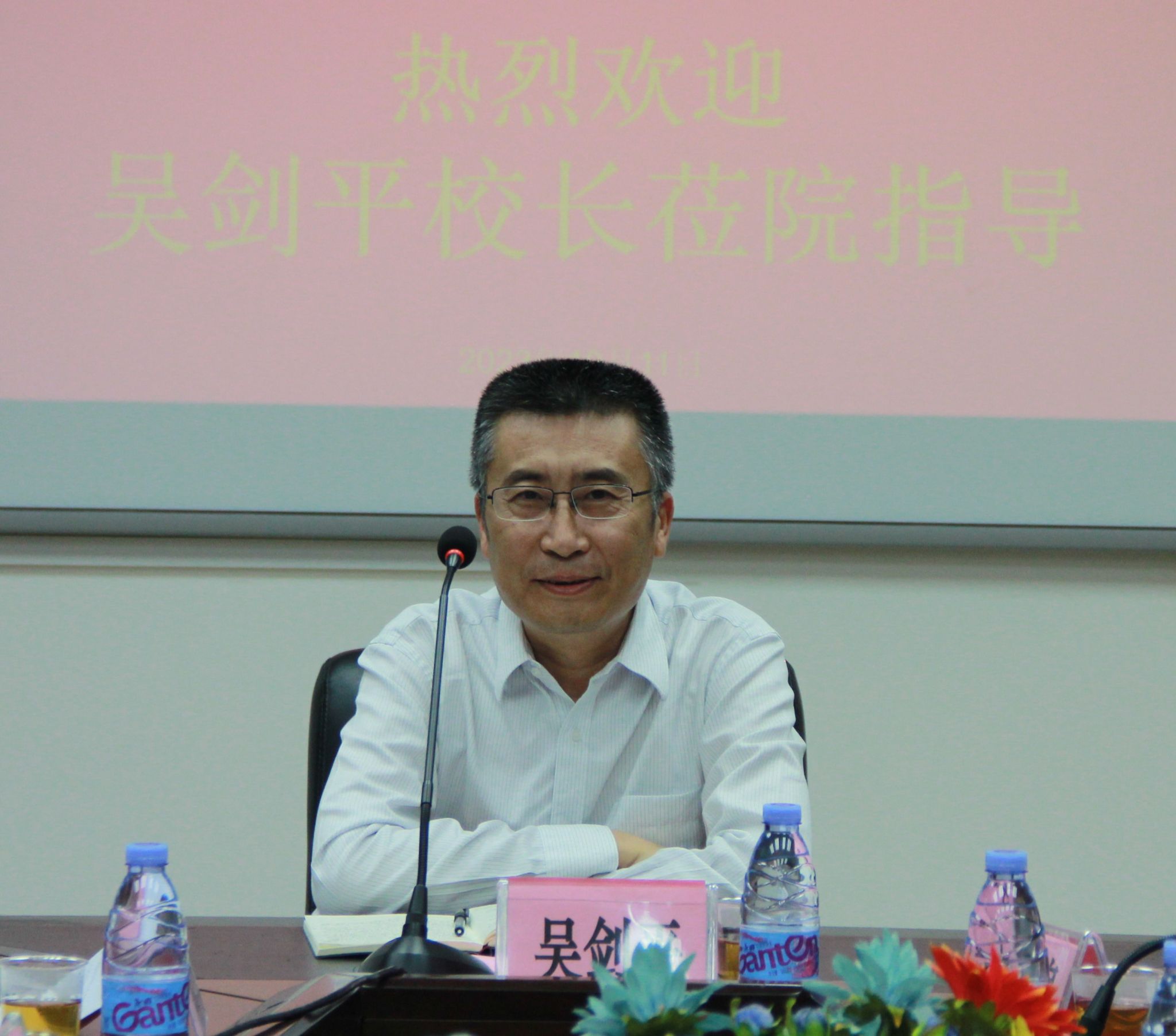 吴剑平认真听取了学院工作汇报和教师代表发言,在肯定学院取得成绩的同时,对学院的未来发展提出四点要求:一是要将外国语言文学博士点建设作为学院发展的关键,积极服务大局,提高质量,突出特色。二是要抓好师资队伍建设,通过外引内培,形成勇于创新、团结向上的教学科研团队。三是要将人才培养作为根本任务和中心工作,高度重视人工智能对教育的深刻影响,致力培养具备全球胜任力的人才。四是要加强党的建设和思想政治教育,全面从严治党,做到党风廉政,学术廉洁。
