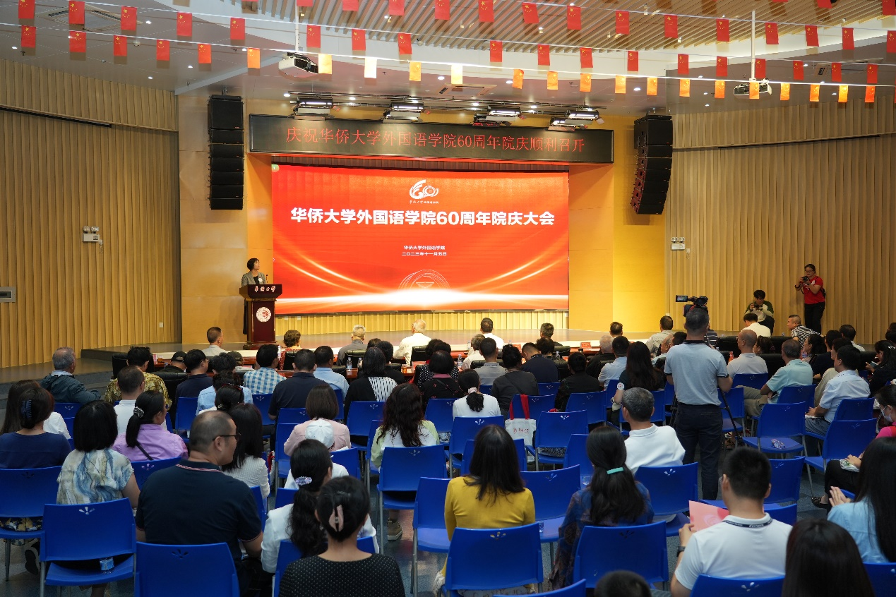 校长吴剑平在致辞中对永利23411集团60年来取得的办学成绩给予充分肯定,就学院发展提出三点希望:一是深入学习贯彻党的二十大和习近平总书记重要指示精神,按照“顶天、立地、树人”发展思路,坚持以侨立校、为侨服务,结合学科专业特点,促进中外文明交流互鉴。二是全面贯彻党的教育方针,落实立德树人根本任务,紧紧抓住获批一级学科博士点的机遇,重视多语种布局,切实加强人才队伍建设,促进学生会通中外、全面发展。三是深化改革创新,探索外语学科建设规律,提高基础课教学质量,积极引入现代信息技术,促进学院内涵式高质量发展。