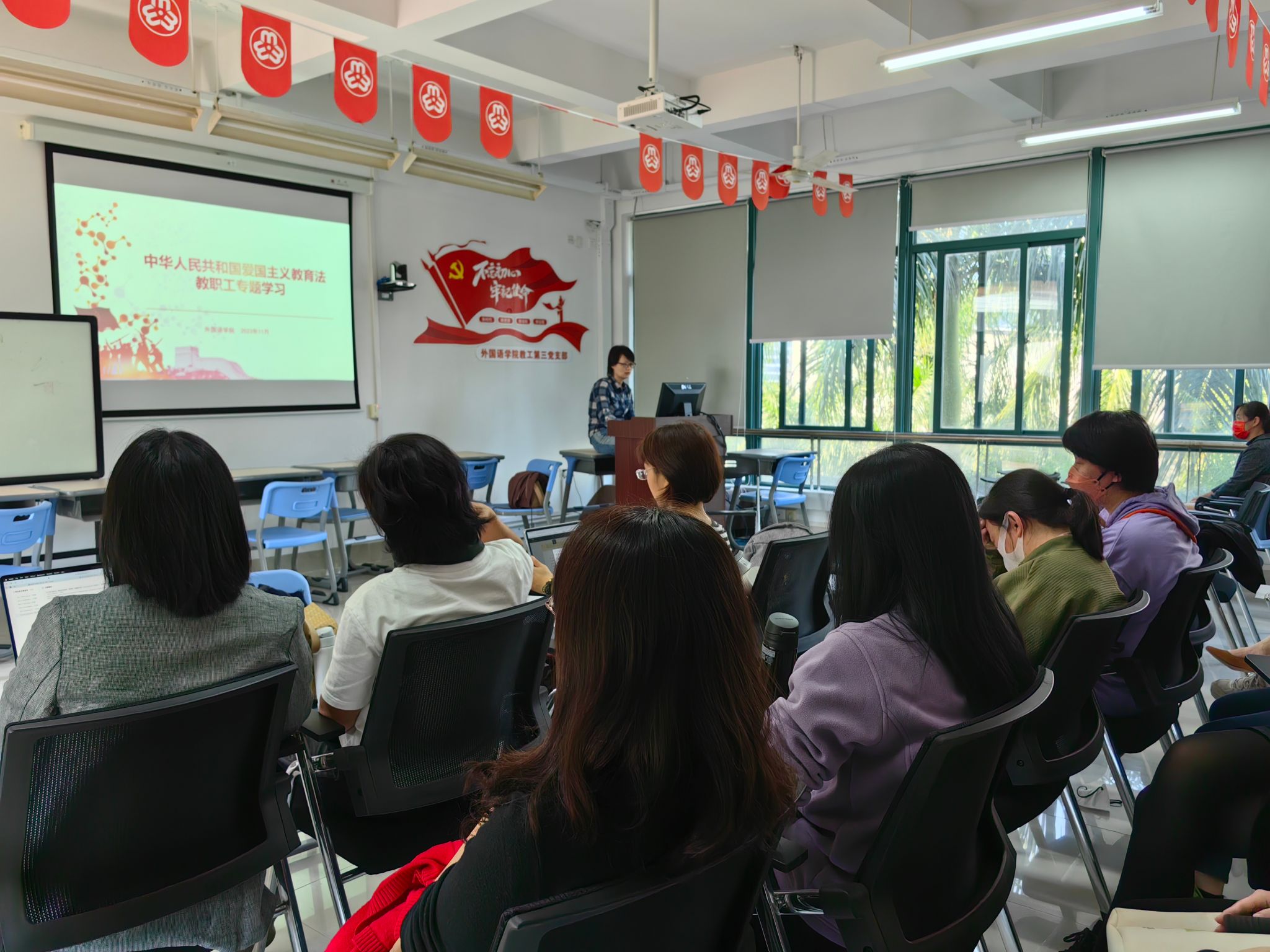 为加强新时代爱国主义教育,传承和弘扬爱国主义精神,更好地将爱国主义教育全面融入外语课程思政教学,培养青年大学生爱国主义思想。11月28日永利23411集团大学英语部组织开展《中华人民共和国爱国主义教育法爱国主义教育法》教职工专题学习,大英部全体教职工分别在厦门校区和泉州校区视频会议形式共同参加学习并组织研讨。