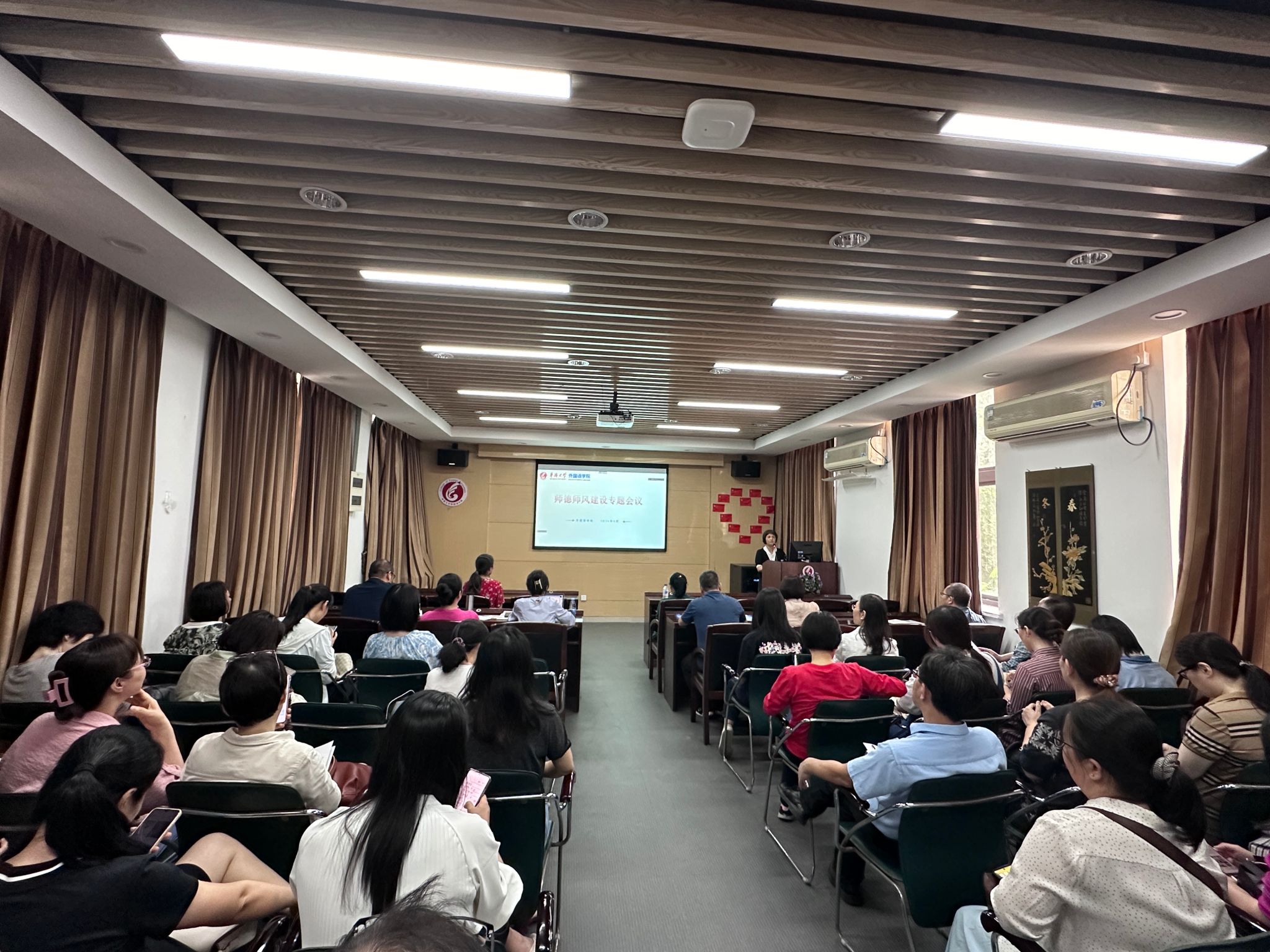 学院党委书记李璐岚主持大会并作主要宣讲,她强调,2024年全面从严治党工作的总体思路,是按照中央统战部、教育部党组、福建省委工作要求,加强党的领导,以政治建设为统领,以党纪学习教育为重点,以巡视整改为契机,推动全面从严治党纵深发展,为推进学校高质量发展提供坚强保障。学院全体教职工应强化理论武装,坚持学思结合,深入学习贯彻习近平新时代中国特色社会主义思想,落实党纪学习教育文件精神和全面从严治党要求,推动学院稳步发展。随后,在师德师风警示教育会上,李璐岚详细解读《事业单位工作人员处分规定》,强调了七个方面违规违纪的处罚方式,以警示与会人员,要吸取负面案例经验教训,要牢记人民教师的初心使命,切忌不可触碰红线。