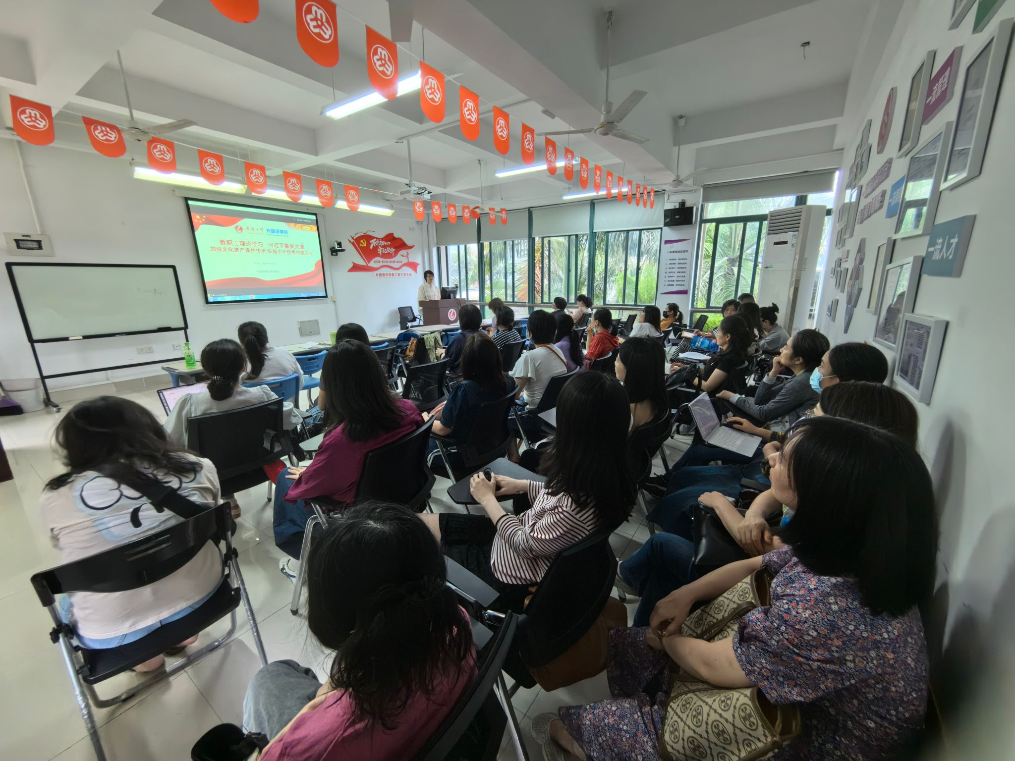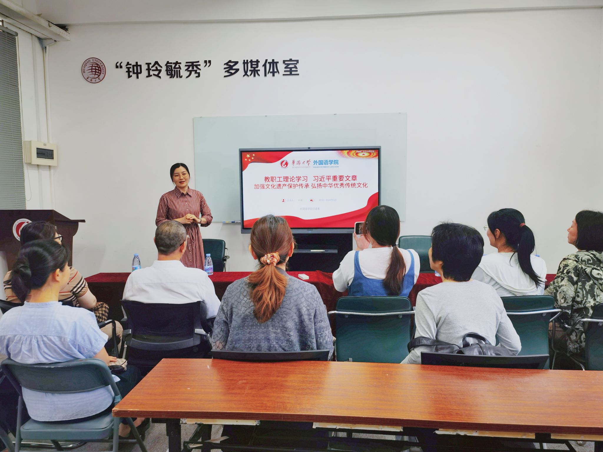 大英部泉州校区和厦门校区召开视频会议,开展线上集中学习,由大英部主任苏慰凰老师主要介绍相关学习内容,苏慰凰指出,保护和传承文化遗产,是弘扬和培育民族文化的永恒动力,我们要坚定中华文化立场,在授课过程中,将中华文化融入课堂,坚定不移地守好伟大而又精深的中华文化,守住孕育我们的中华文化之根。