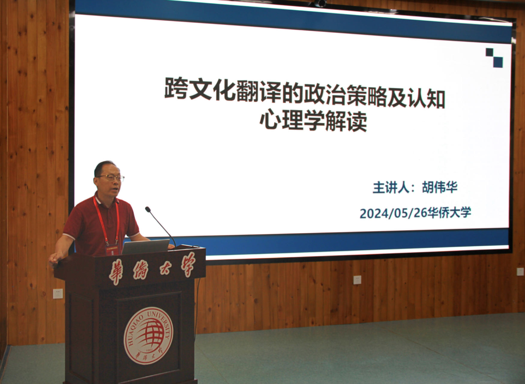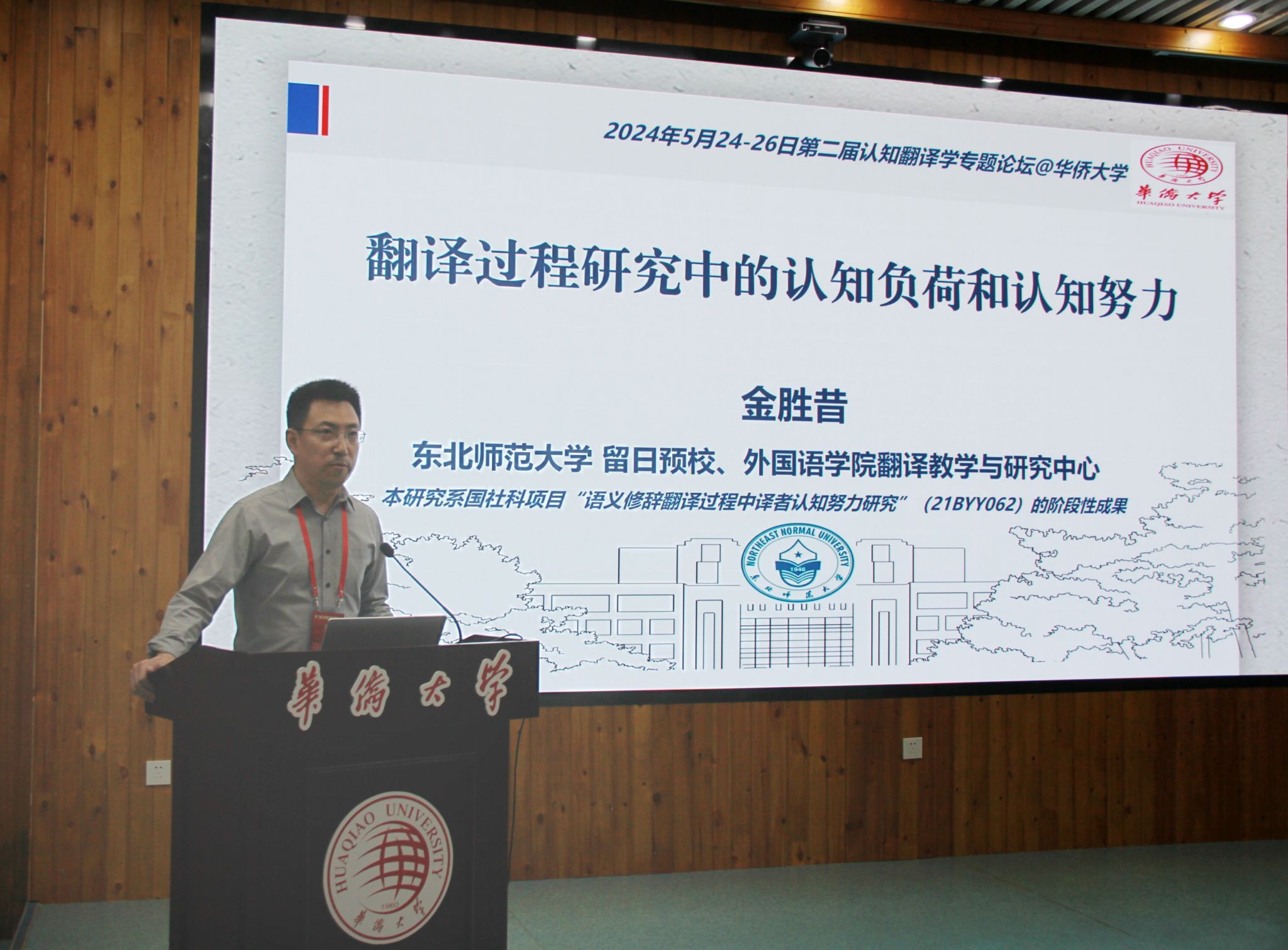 26日上午,第五和第六场主旨报告由华东理工大学吴建伟教授主持。东北师范大学金胜昔教授在以“翻译过程研究中的认知负荷与认知努力”为题的报告中,重点阐释了认知负荷到认知努力的流动转递是翻译活动中译者主体与客体世界互动的结果。就施动因素而言,认知负荷主要受客观外界的翻译源语文本和环境等因素影响,认知努力受主观内在的译者因素调配。西安工程大学胡伟华教授报告的题目为“跨文化翻译政治策略的翻译认知心理学解读”。他指出,译者作为不同文化之间沟通的使者,选取正确的翻译政治策略不仅有利于达到源语文化和目的语文化之间的交流,也有利于本民族文化的对外传播与国家形象的树立。