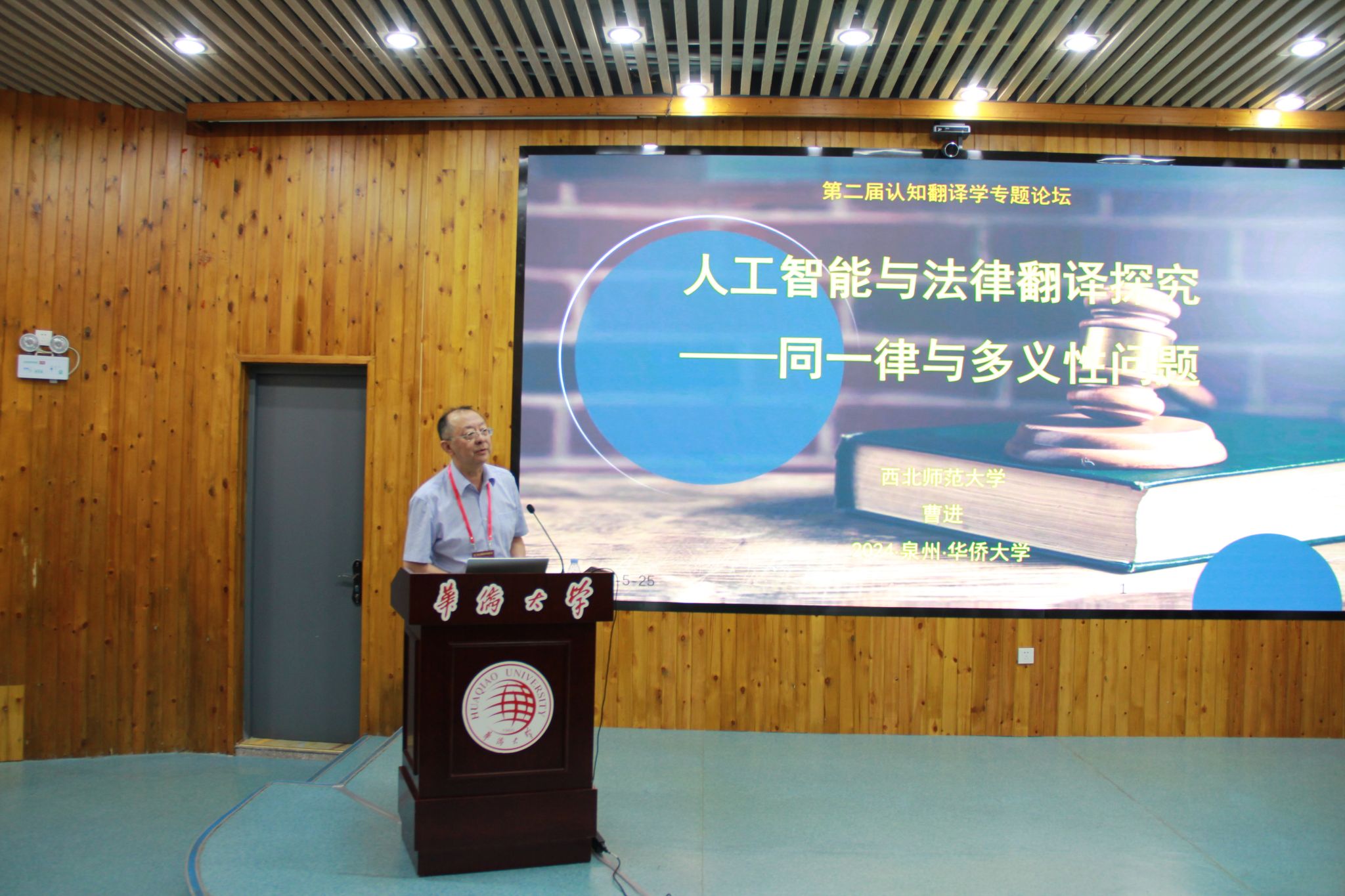 第三和第四场主旨报告由黄春芳教授主持。yL23411永利集团/中国人民大学王建华教授聚焦“人工智能与口译过程认知研究”,指出人工智能口译系统与口译过程认知研究密不可分,相互成就。口译认知过程最大的难点有两个,一个是信息理解的准确性,另一个是信息存储记忆的完整性。西北师范大学曹进教授报告的题目为“人工智能与法律翻译同一律与多义性探究”。他指出,法律翻译是一项极具挑战性的工作,需要译者兼备语言能力和专业知识。其中两大难点是“同一律”和“多义性”。随着人工智能翻译技术的不断进步,其在处理这些复杂问题上的潜力受到关注。但同时也需要注意人工智能翻译的局限性,如无法完全理解法律内涵、无法独立作出复杂判断人工智能翻译技术为法律翻译工作提供了新的可能,但仍需与人工翻译相互补充,共同应对法律翻译的各种挑战。