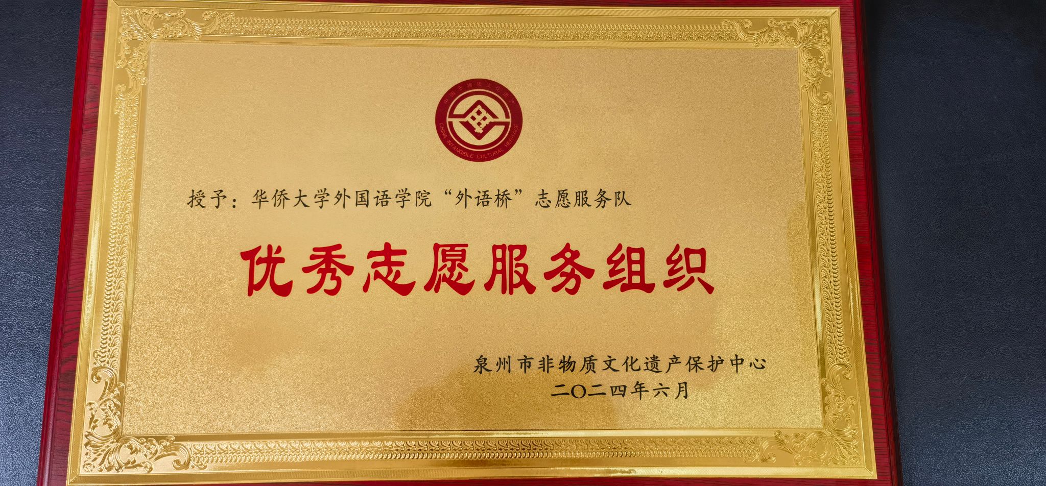 6月8日,由泉州市文化广电和旅游局主办,泉州市艺术馆、非物质文化遗产保护中心承办的泉州市“文化和自然遗产日活动”举行。现场表彰了2023年度泉州市非遗优秀志愿者团队和优秀非遗志愿讲解员。我校永利23411集团“外语桥”志愿服务队获得由泉州市非物质文化遗产保护中心颁发的“优秀志愿服务组织”奖。