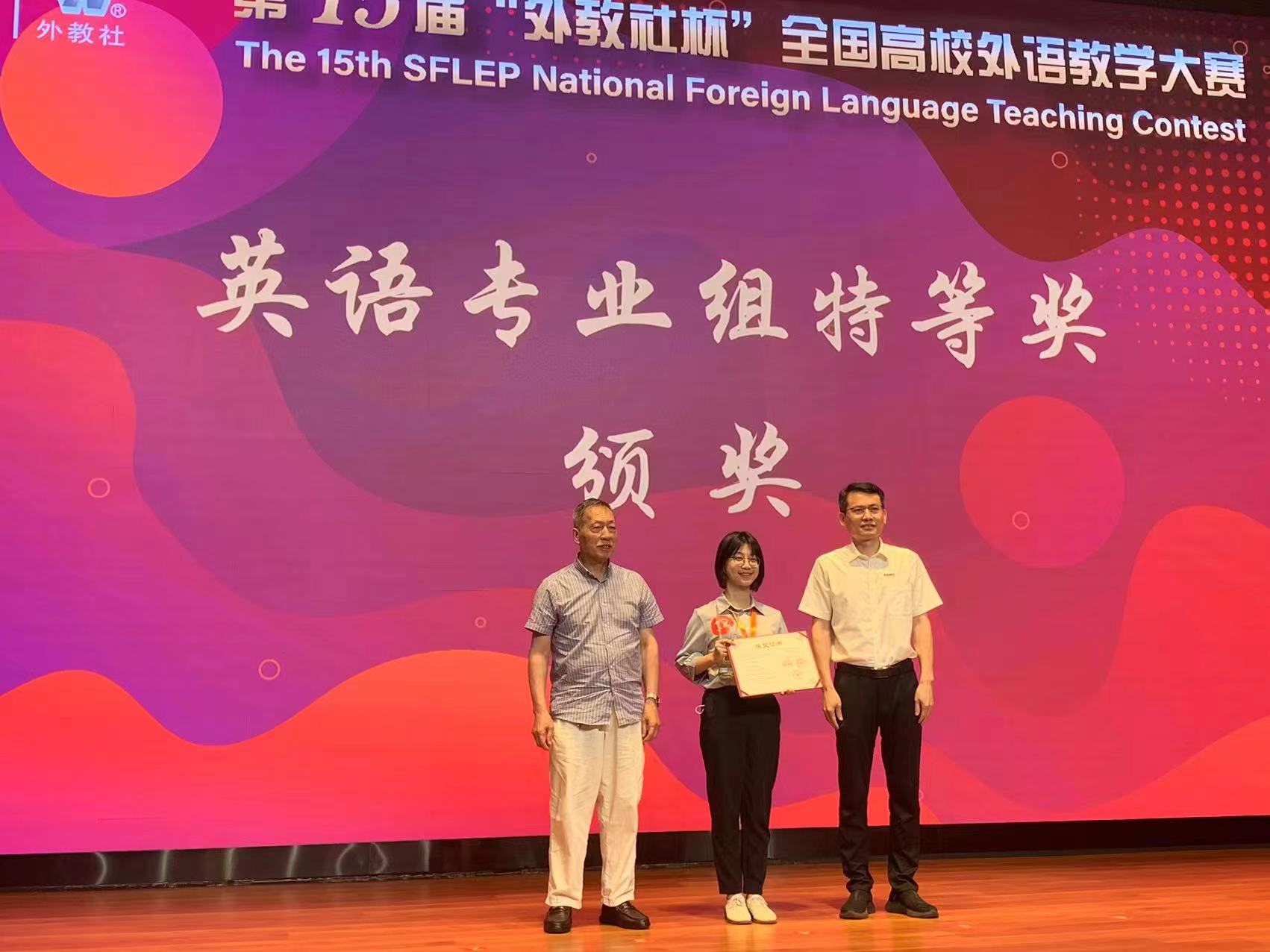 2024年6月22日,第十五届“外教社杯”全国高校外语教学大赛福建赛区比赛于福州大学举行,来自全省二十所高校的23名优秀大学英语教师齐聚一堂,切磋技艺,经过激烈角逐,我院谭颖琳老师在众多选手中脱颖而出,荣获英语专业组特等奖,这也是我校教师在该赛事中首次获得特等奖。
