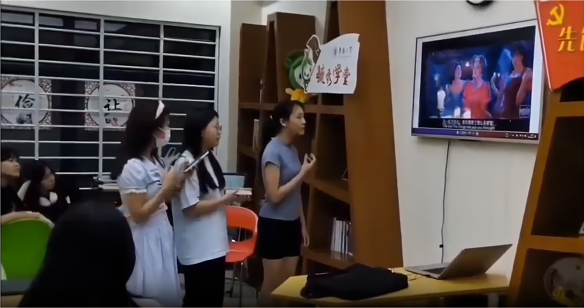 黄佳丽老师在“电影鉴赏”主题中挑选《了不起的盖茨比》《楚门的世界》等经典电影的部分精彩情节,提供讨论和沟通的多类情境,由不同小组同学进行分饰各角演绎,使学生既能身临其境有趣的电影片段,又能提升英语的听说能力。在卢利老师引导下,参与“音乐鉴赏”主题英语角的同学积极交流自己喜欢的歌曲、歌手或乐队。特别分享环节,台上学生深情演唱英文歌曲,台下同学欢快跟唱,气氛热烈。而在吕碧霞老师主持的“配音”主题英语角上,师生共同探讨配音的声音技巧、情感表达方式,学习配音演员的专业素养,并交流分享各自钟爱的经典配音片段。活动现场,部分学生选取《海绵宝宝》《后妈茶话会》《疯狂动物城》《狮子王》等经典影片片段进行声情并茂的演绎,带来精彩的视听盛宴。2023级英语专业学生黄禹璇表示:“我和同学们在有趣的主题下通过多彩的形式用英语交流心得感想,收获的不只是口语表达的进步,更是英语思维的拓展。”