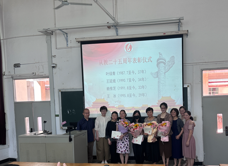 首先,举行表彰仪式,李璐岚书记宣读表彰从教二十五周年女教师名单,并与朱琳副院长、张红副院长分别为叶绿青(从教37年)、王延娥(从教34年)、赖惟芝(从教33年)和王冰(从教29年)4位老师颁发荣誉证书,由学院系部主任为他们送上鲜花,表达敬意和传承,并合影留念。“从教25年”是女教师生涯中一个光荣的里程碑,李璐岚代表学院向受表彰教师表达敬意,感谢他们为学生成长成才、为教育事业发展、为学校发展做出的非凡贡献。希望大家继续做好教书育人、管理育人、服务育人;继续关心、帮助年轻教师成长和发展,发挥好传帮带作用,为学校、学院发展发挥更大作用。