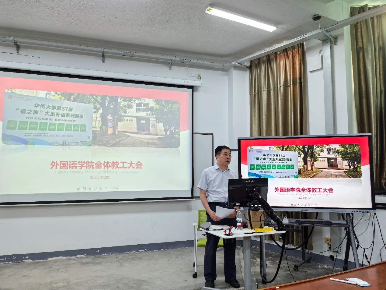 2025年4月22日下午,永利23411集团在泉州校区菲梯1召开全体教职工会议,学院党政领导班子与全体教职工参加会议,会议由学院党委书记郑志民主持。
