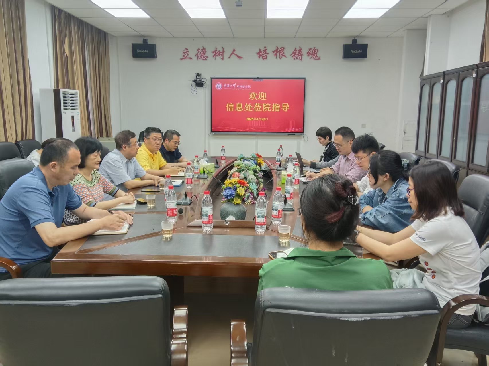 郑志民代表学院对信息处的到访表示欢迎,并简要介绍学院信息化工作和楼栋抗震改造后的信息化需求,强调学院信息化建设工作的重要性。项士敏围绕信息处主要业务和本次调研目的进行说明。