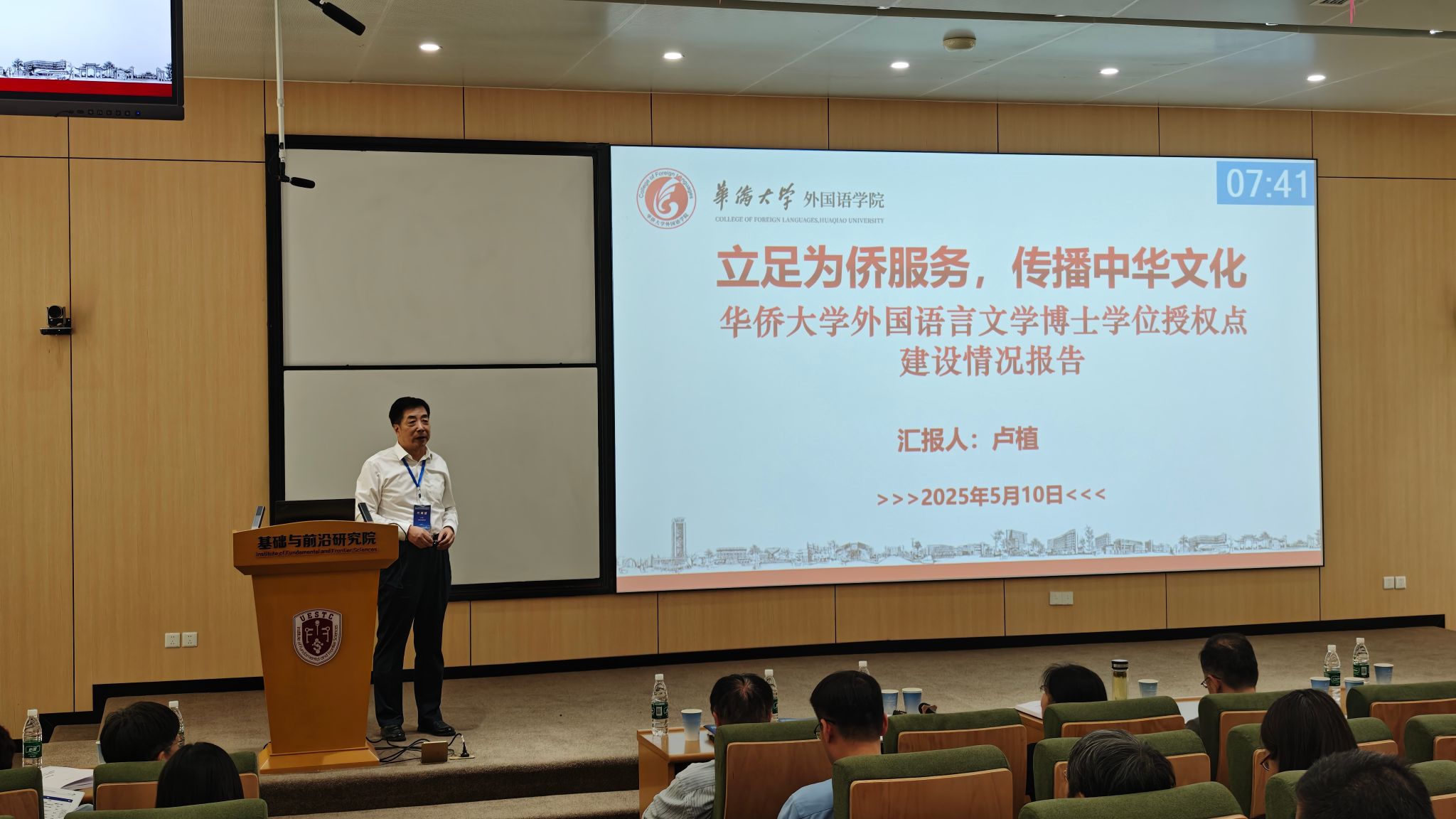 卢植院长以“立足为侨服务,传播中华文化”为主题代表学位点作报告。通过学位点建设的目标与标准、人才服务、服务贡献等方面汇报了学位授权点建设的基本情况及存在问题和改进措施。与会专家点评,肯定了我校以侨立校、为侨服务的办学特色,在海外华人文学、世界华语文学等方面建设的特色和优势,同时也提出了后期建设的意见建议。