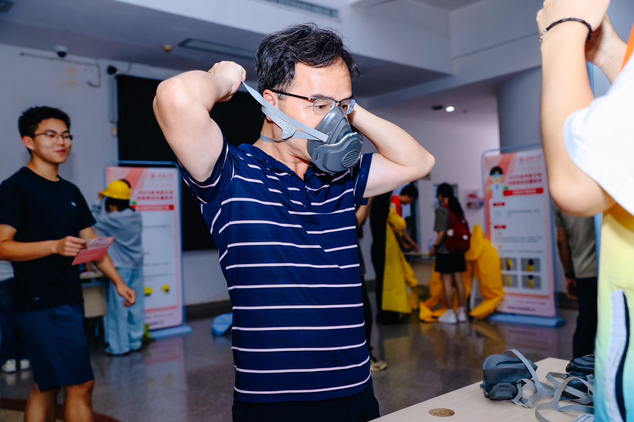 启动仪式结束后,实验室安全应急处置演练和实验室安全嘉年华活动随即展开。实验室安全嘉年华活动围绕洗眼器使用、防毒面具佩戴等 8 项实验室安全知识相关闯关游戏开展,寓教于乐,让师生在趣味互动中增长实验室安全知识,增强风险应对能力,进一步提升实验室安全意识。