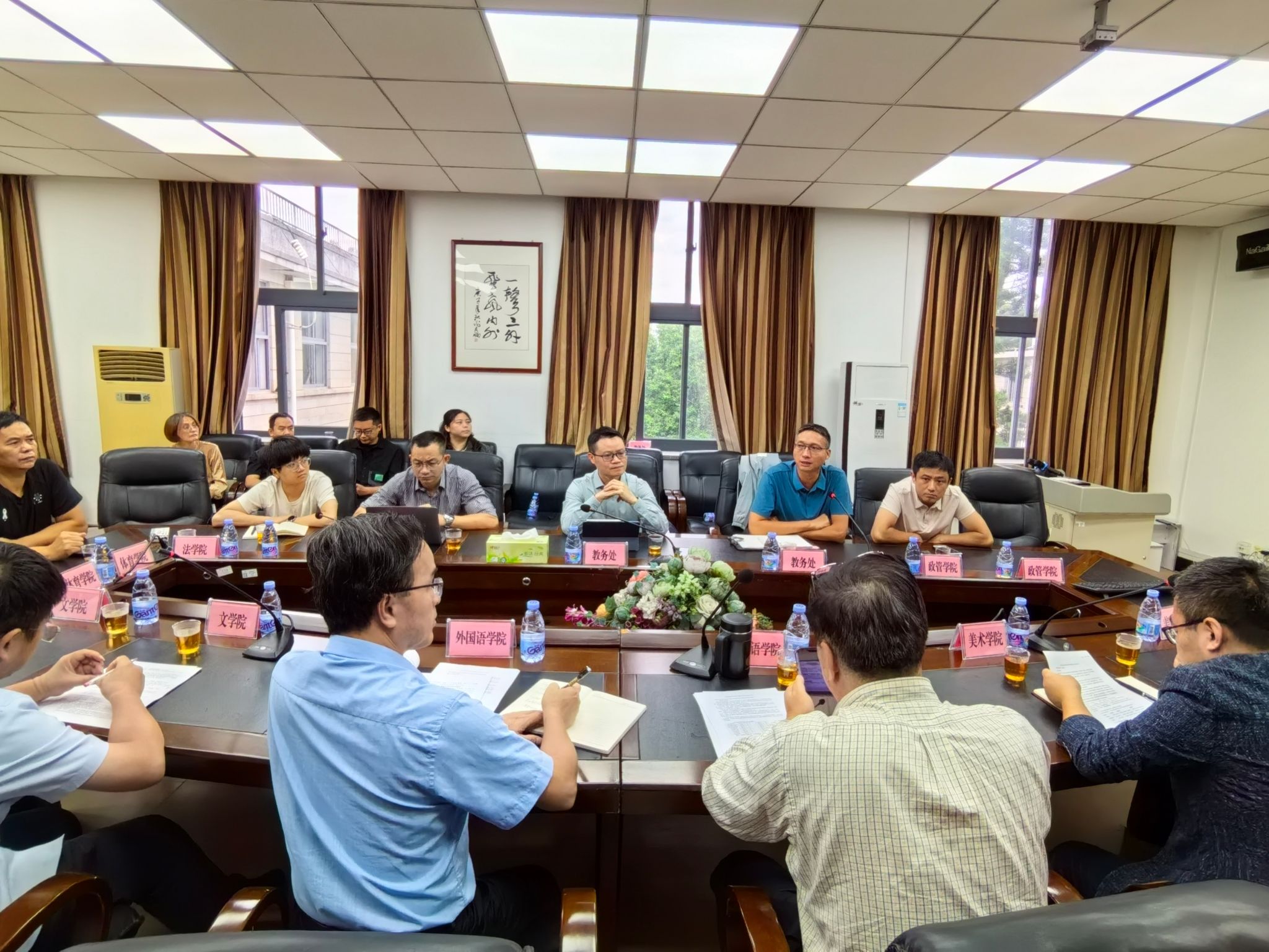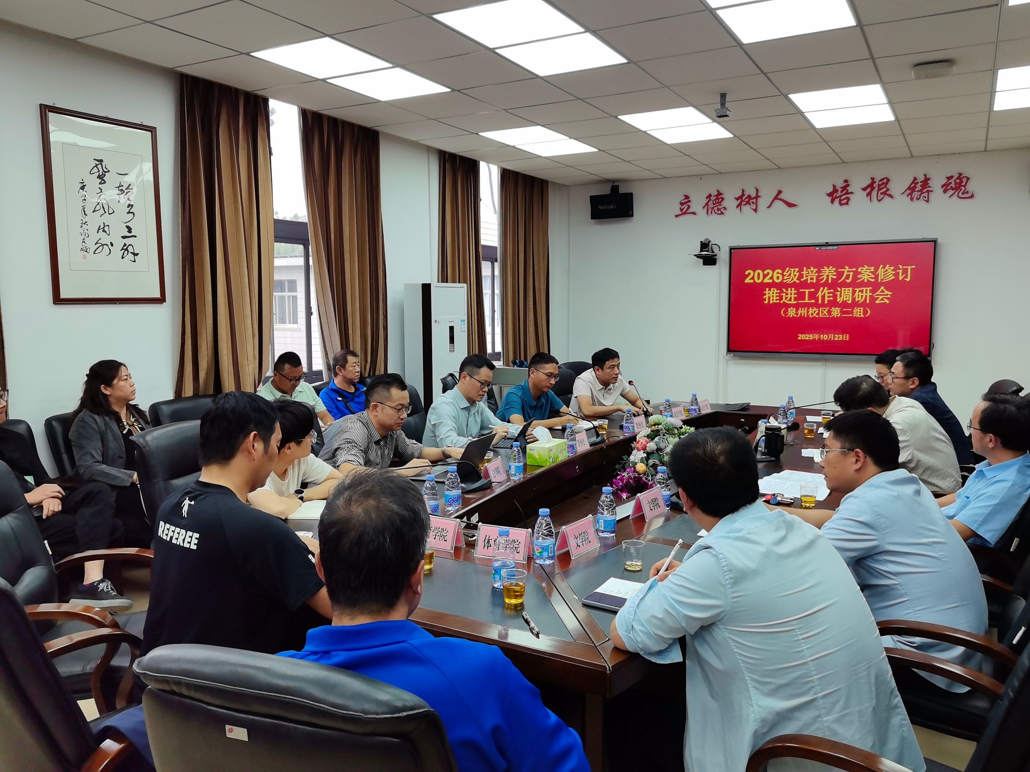 10月23日周四下午,yL23411永利集团教务处在永利23411集团411会议室召开2026级培养方案修订推进工作(泉州校区第二组)调研会。本组调研学院为永利23411集团、美术学院、政管学院、文学院、法学院、体育学院六个学院,教务处黄华林处长主持会议。教务处副处长李金杰以及上述学院的分管教学副院长、系主任、专业负责人等参加会议。